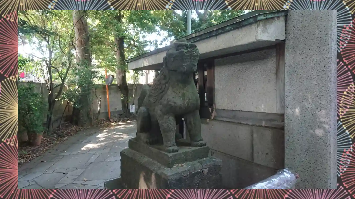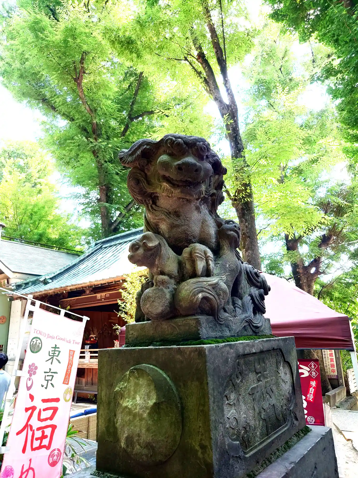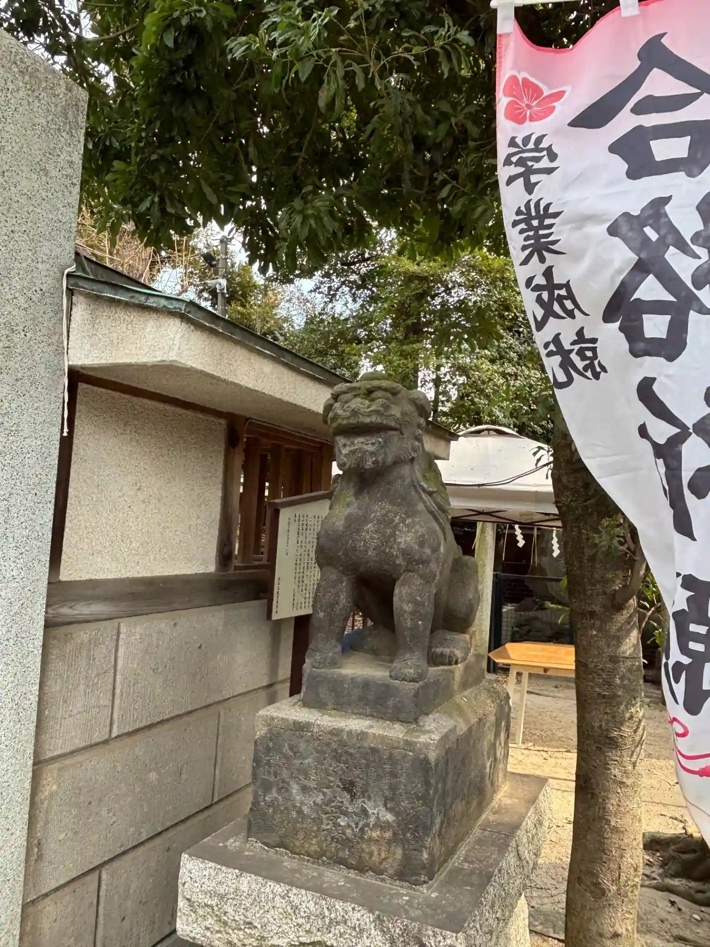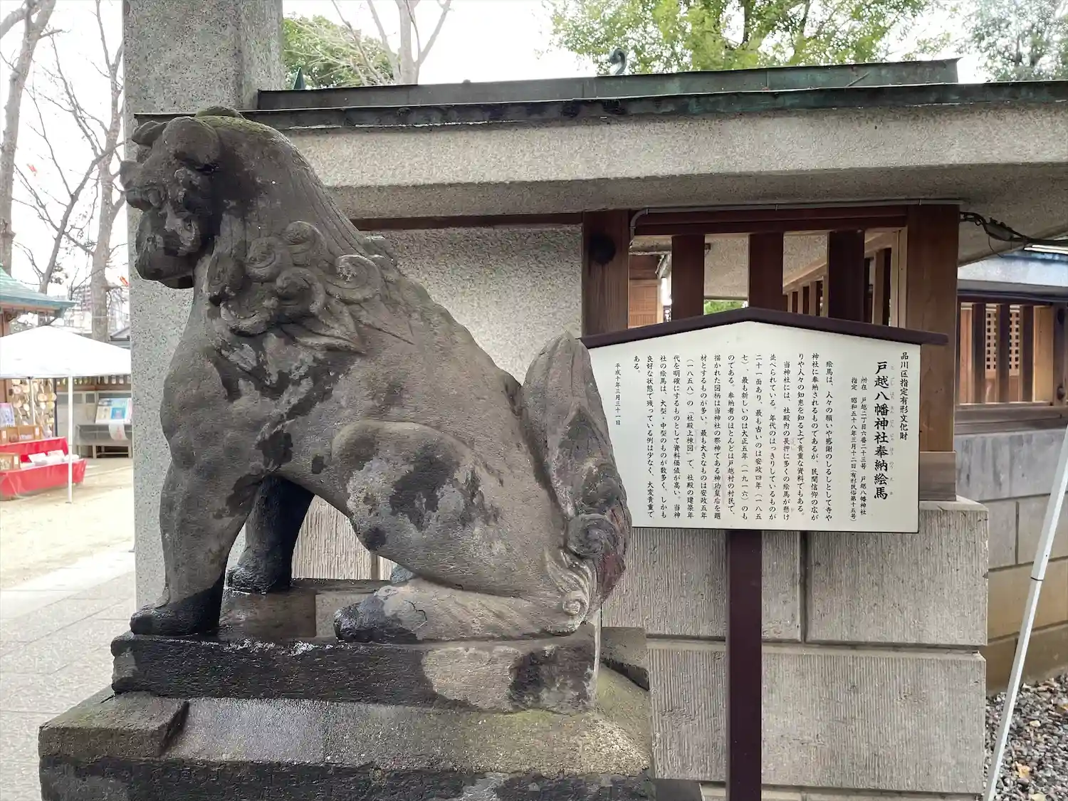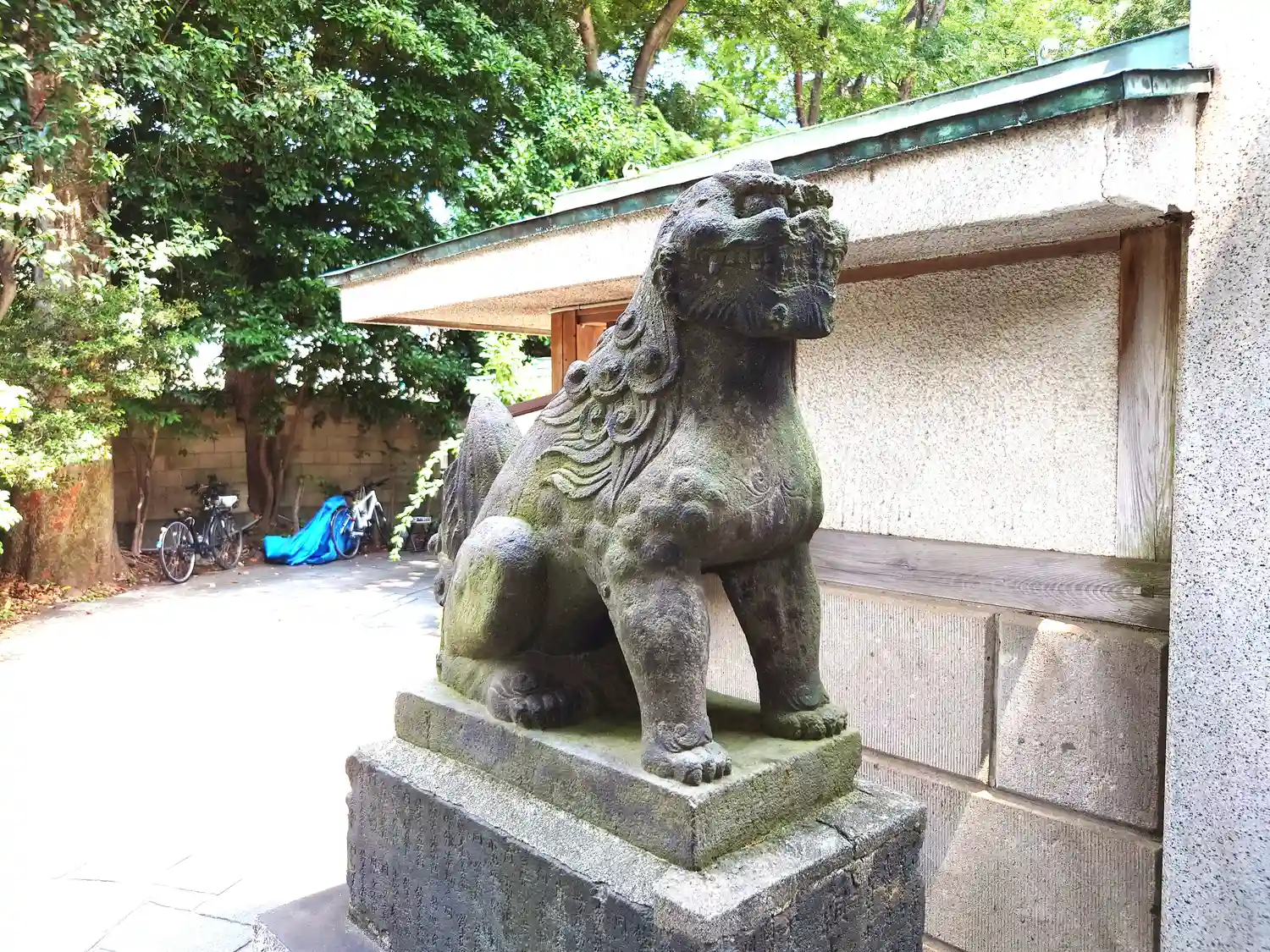 向かって左手が阿の狛犬様。遠くから見るとなまずのように見えます。
