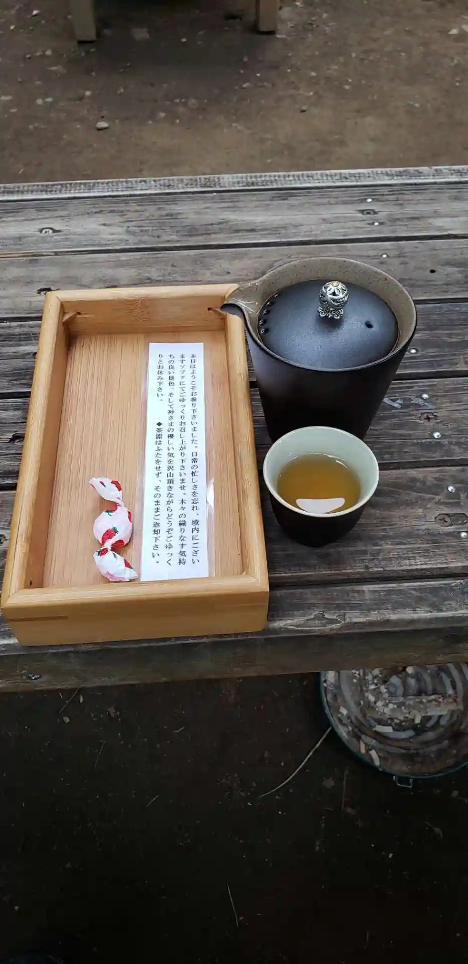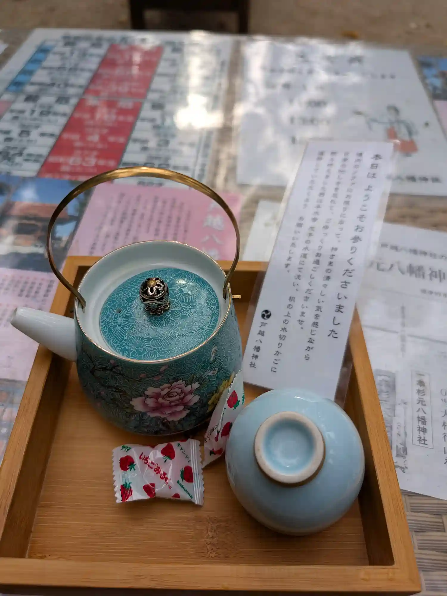 御朱印を待つ間、オルゴール曲が流れるなかでお茶とお菓子をいただき、友人とまったり過ごさせていただきました🍵