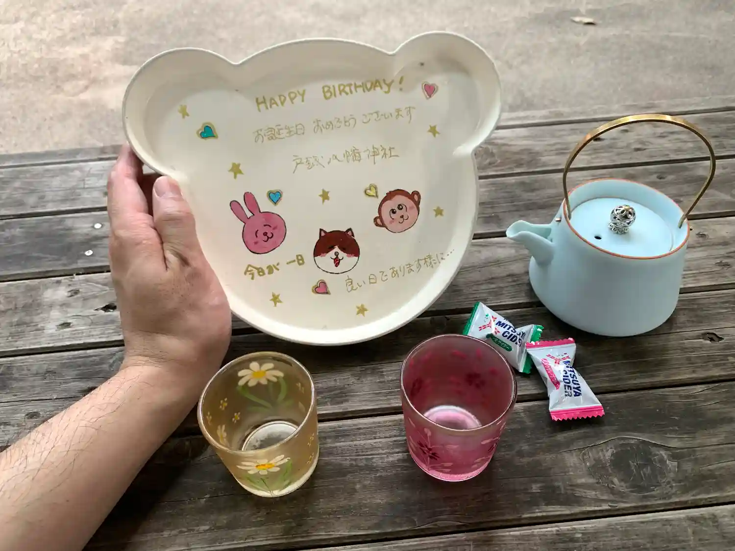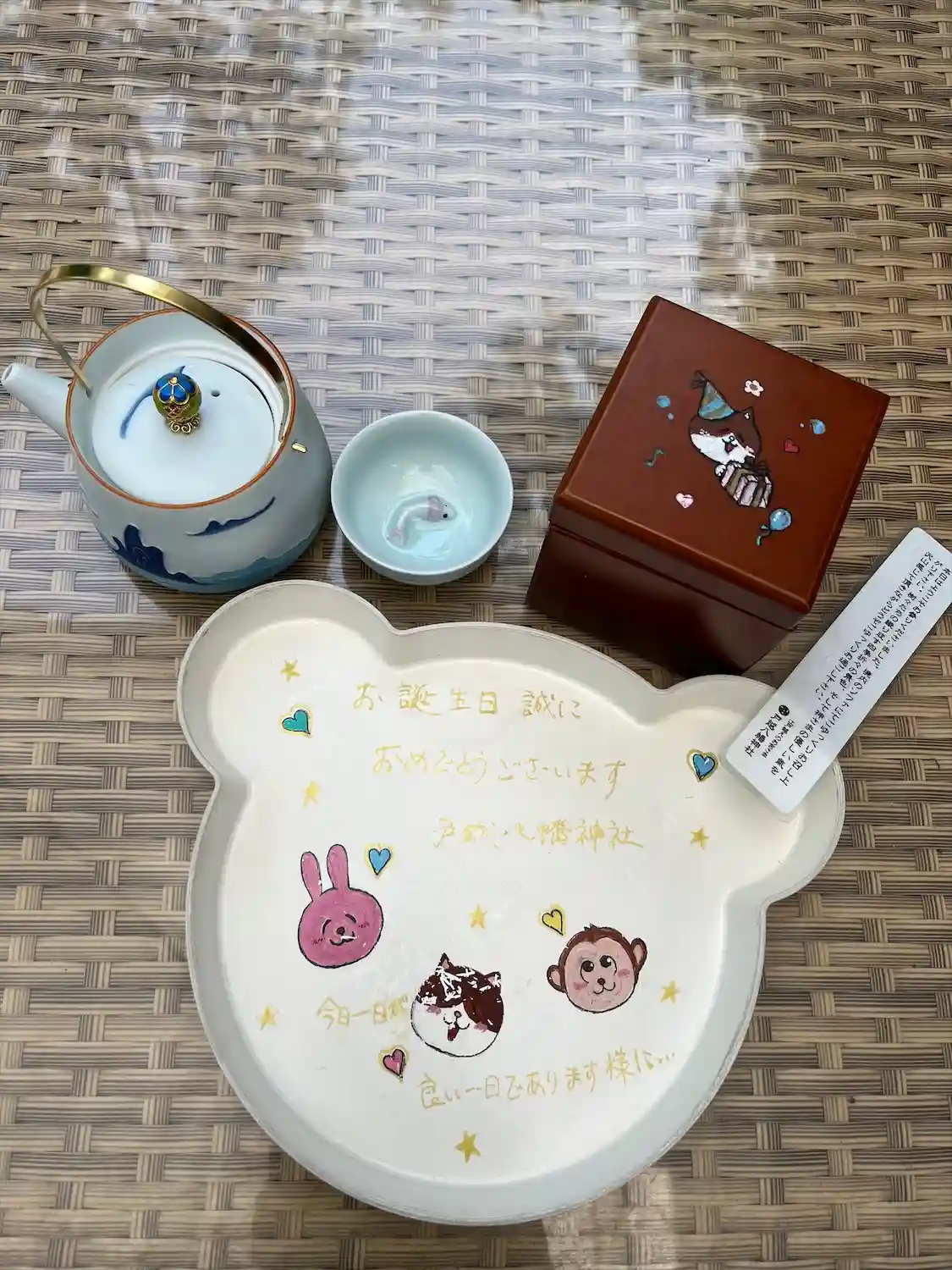 誕生日の御朱印をお願いすると、お茶🍵の他にハッピーバースデーの音楽が流れるオルゴールを一緒に用意してくださいました。