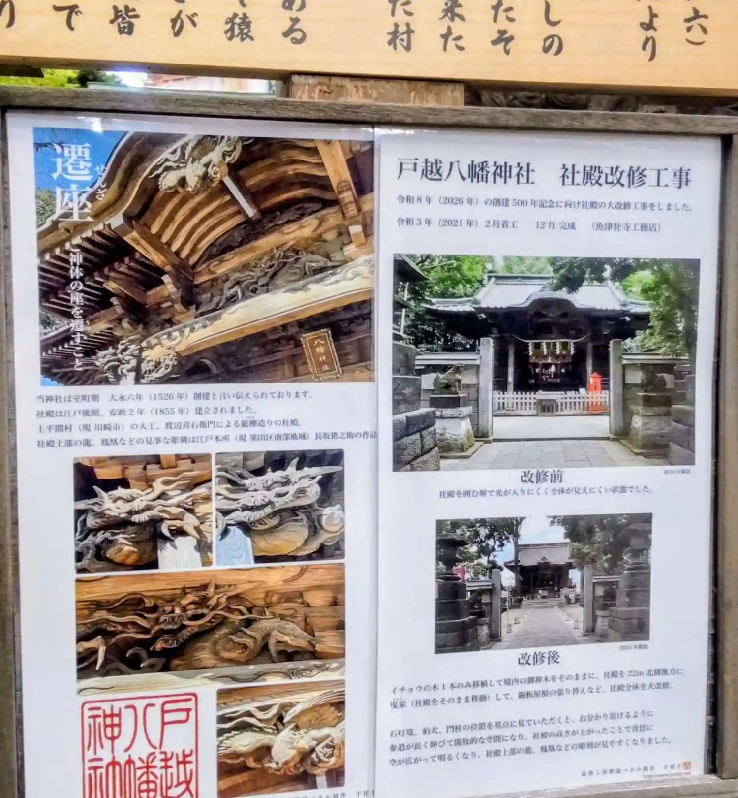 拝殿の改修工事始ま…