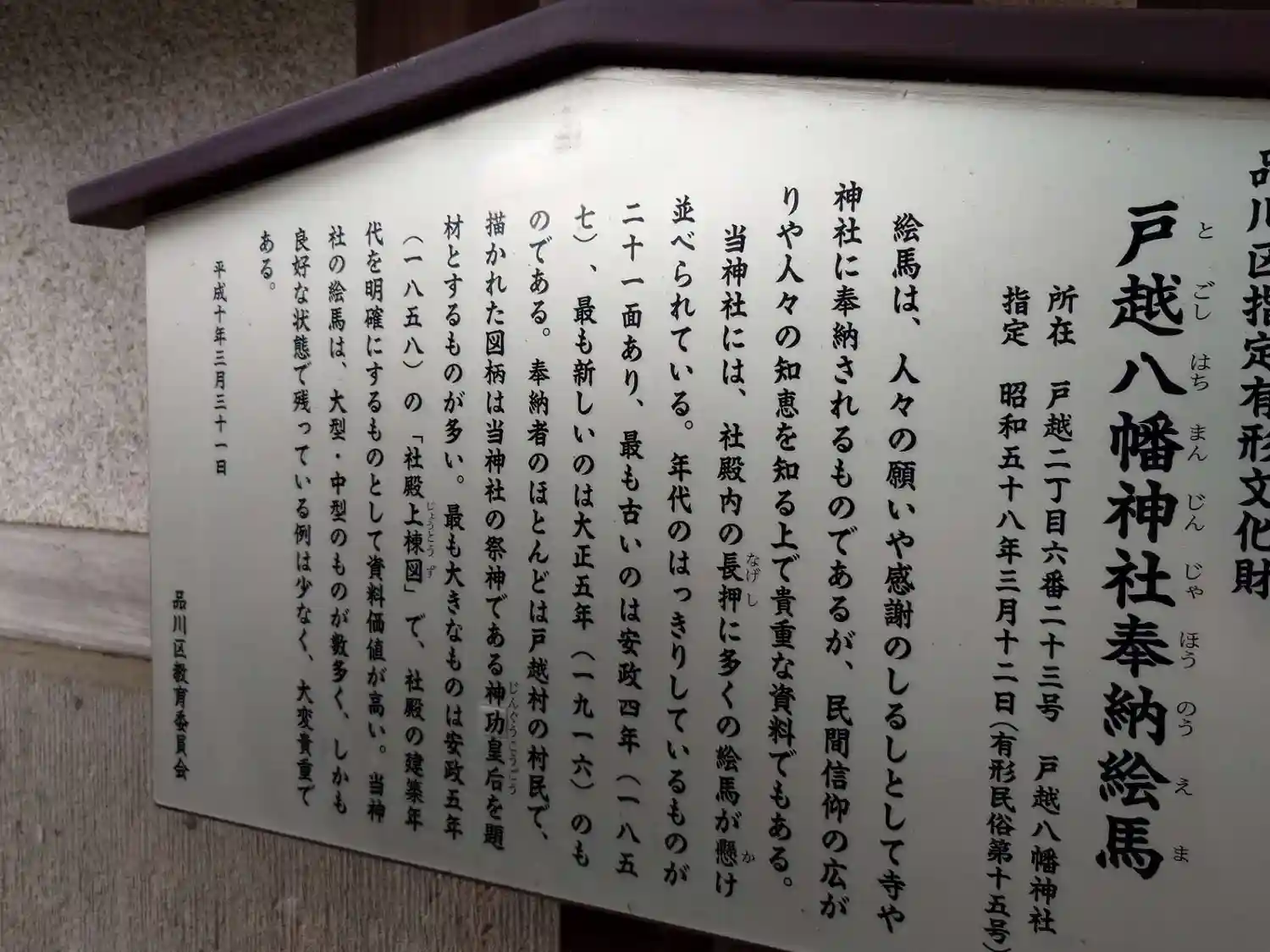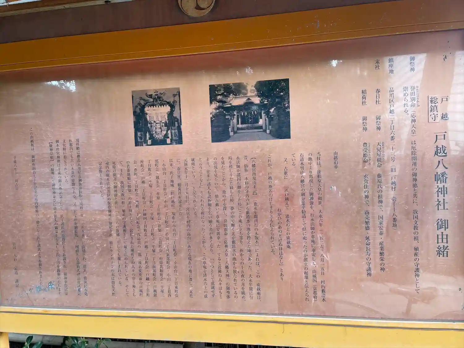品川区戸越にある村社の神社。主祭神は誉田別命。創建は大永6年(1526年)で、例祭は9月第二土曜…
