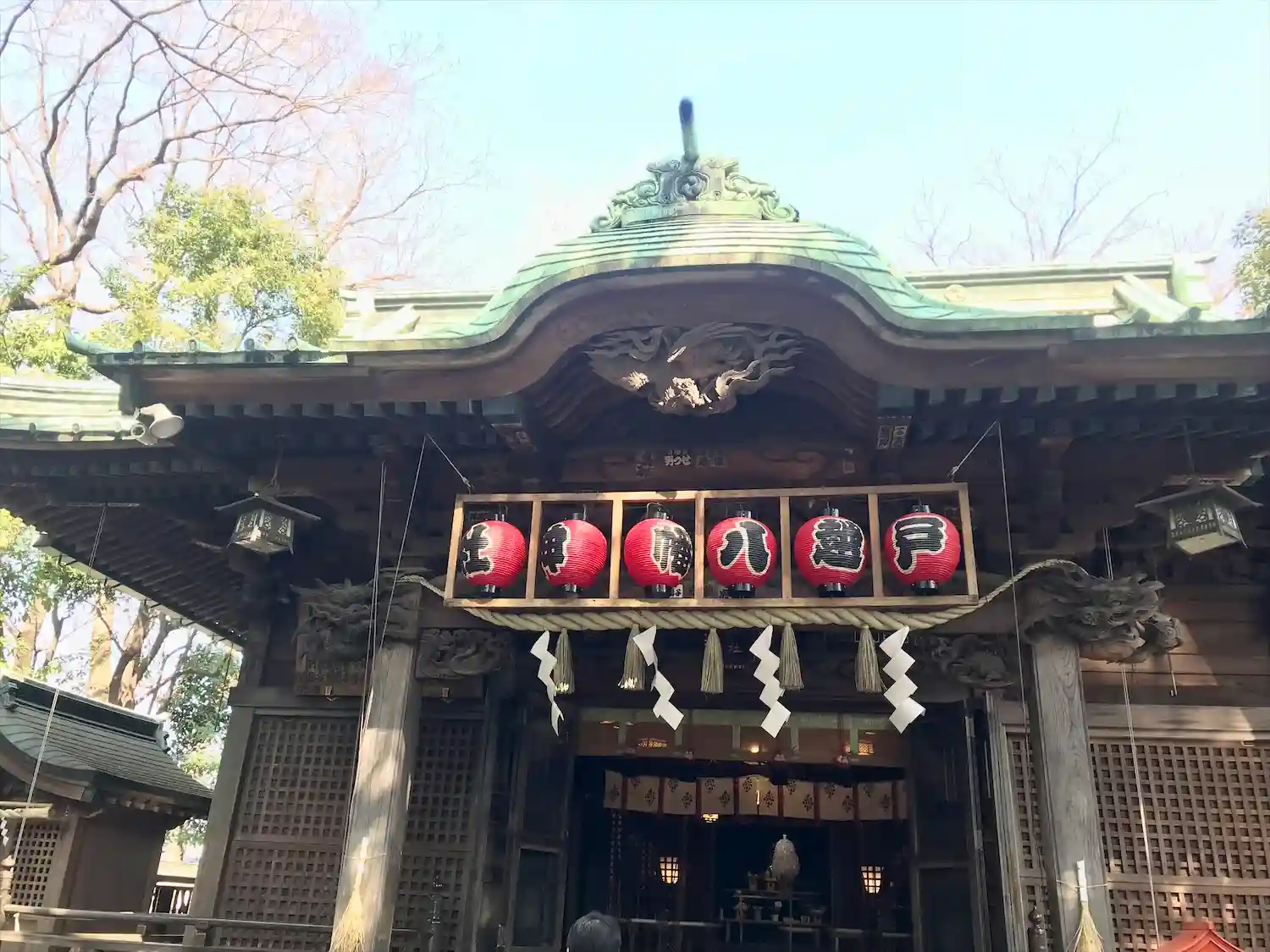 戸越銀座商店街に程近いお社。境内には大木たくさんあり、都会では管理が大変そう!