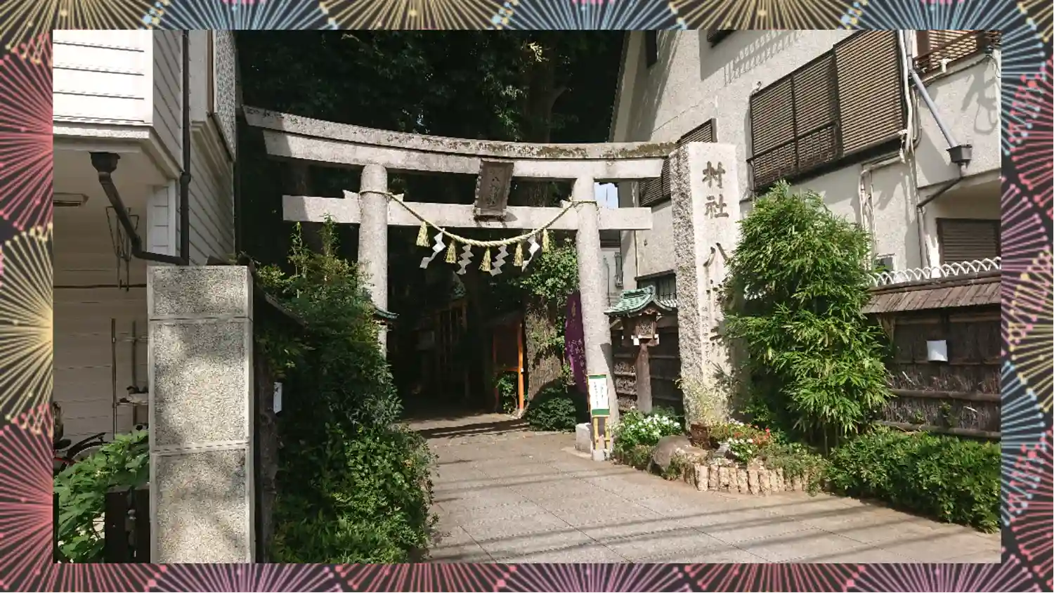 住宅街のなかに突然木に囲まれた神社が。