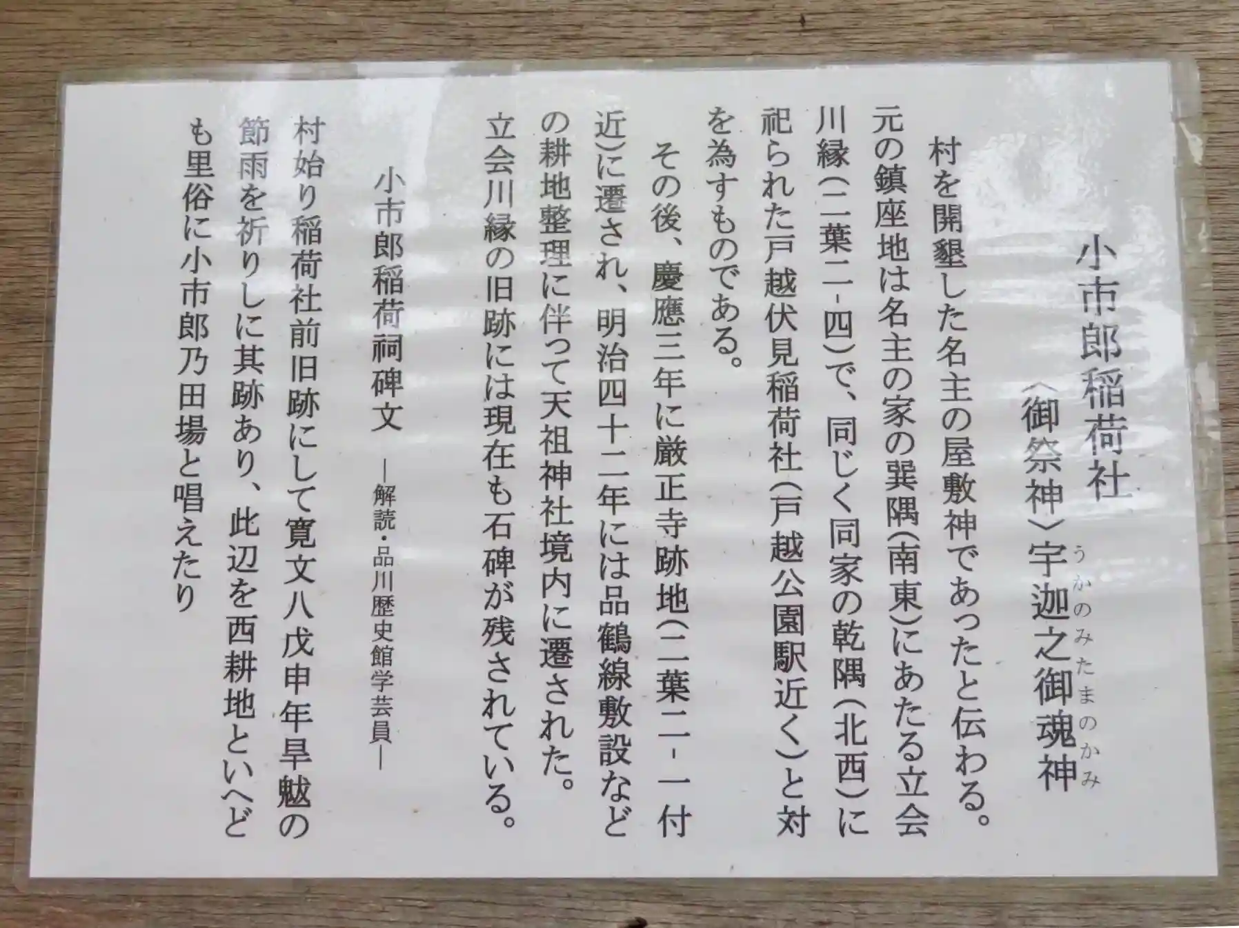 小市郎稲荷社由緒書