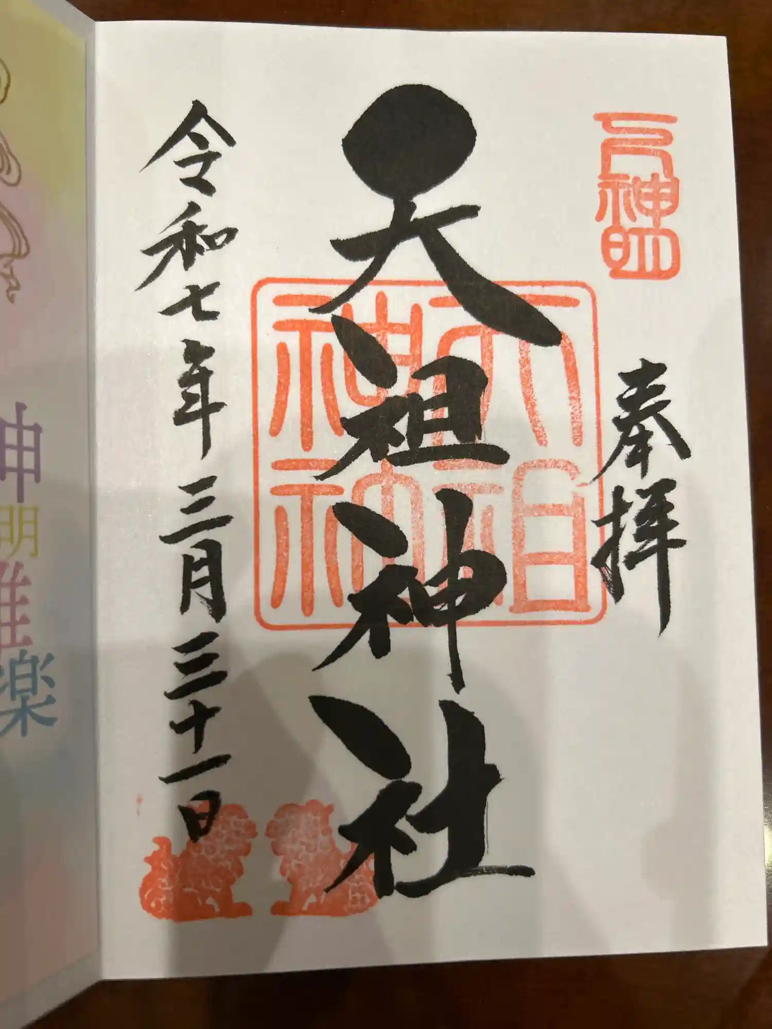 「神明雅楽」の限定御朱印です。