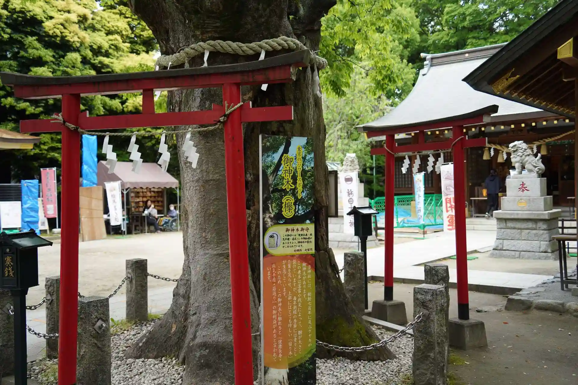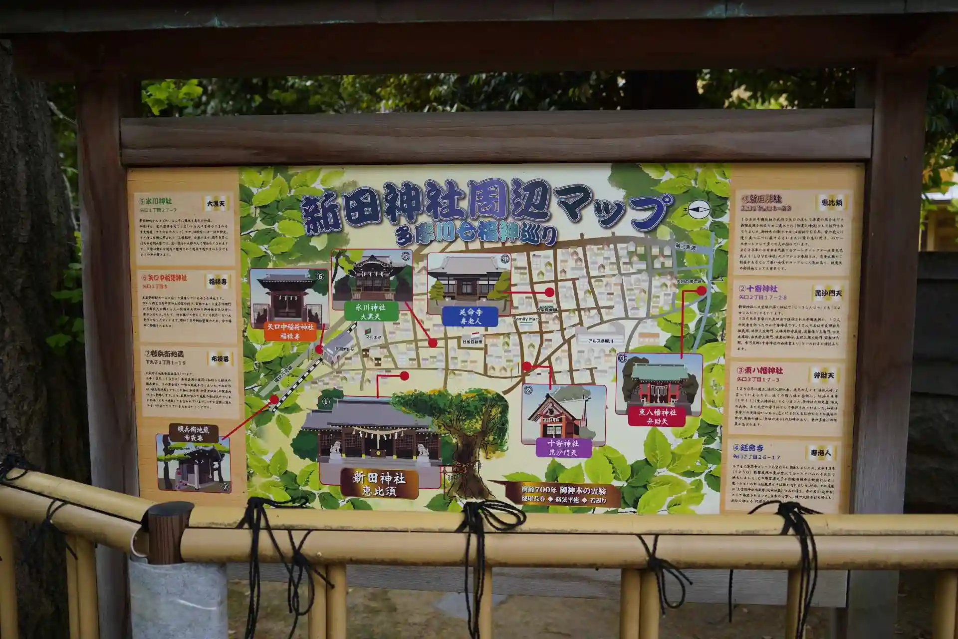 端午の節句ということもあって、赤ちゃんを抱えたご家族の参拝者を見かけました。境内には新田神社周辺マップがあり、多摩川七福神巡りの案内があったので7か所めぐってみました。
