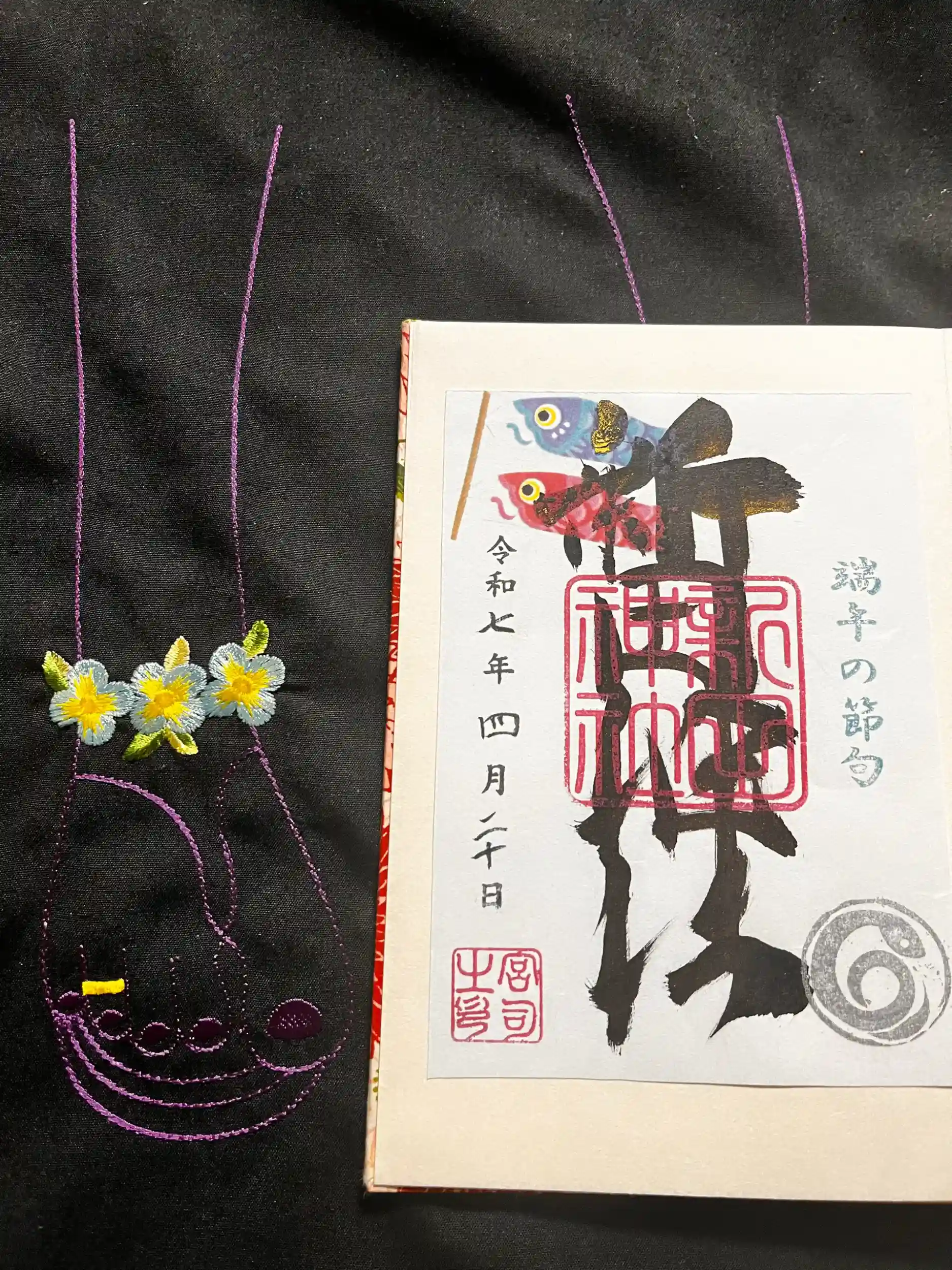 お智達と 端午の節句のいただきました 新田神社の文字に金が入っていて 素敵です