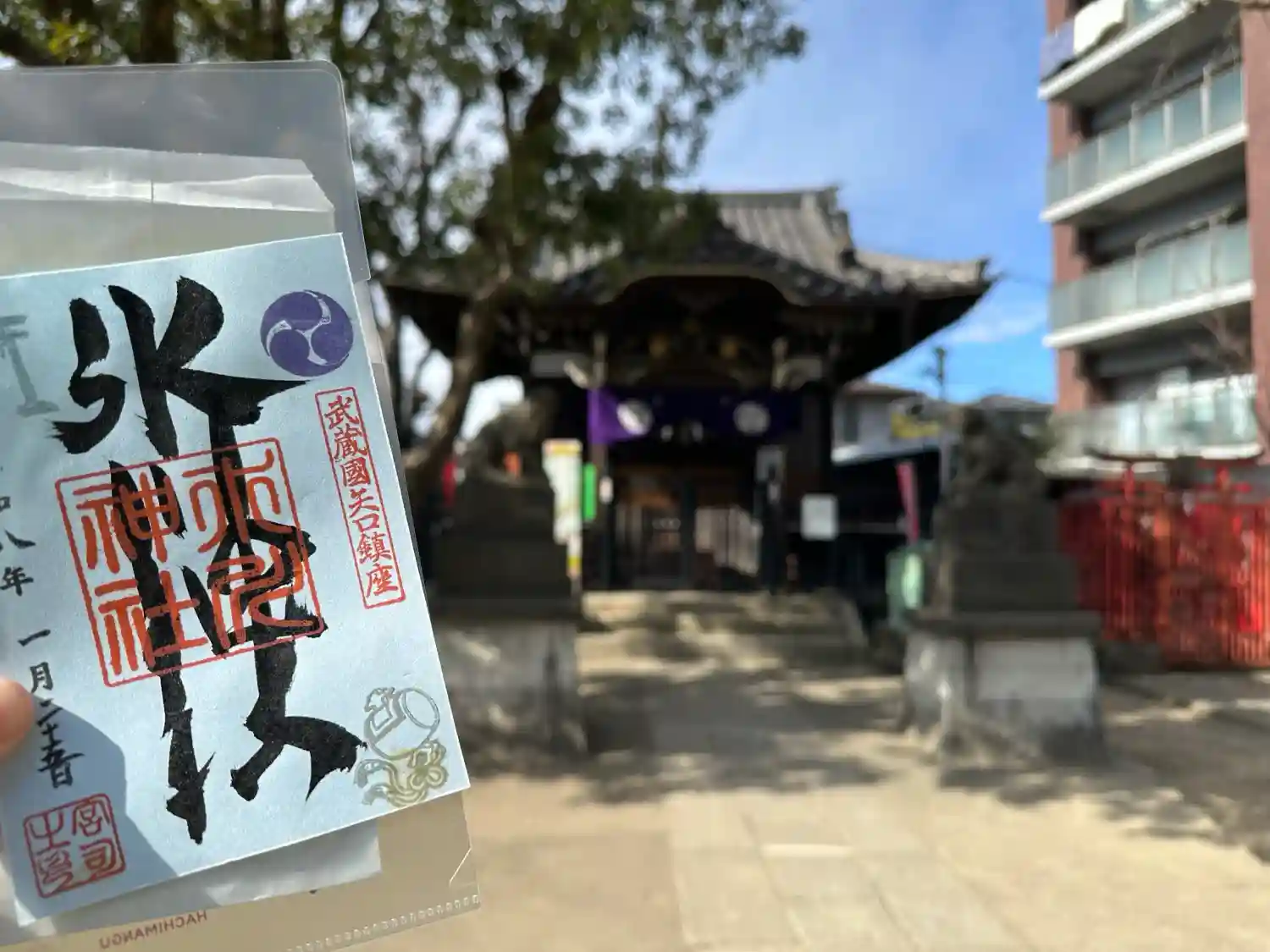 矢口氷川神社の御朱印は新田神社にて頒布されています。