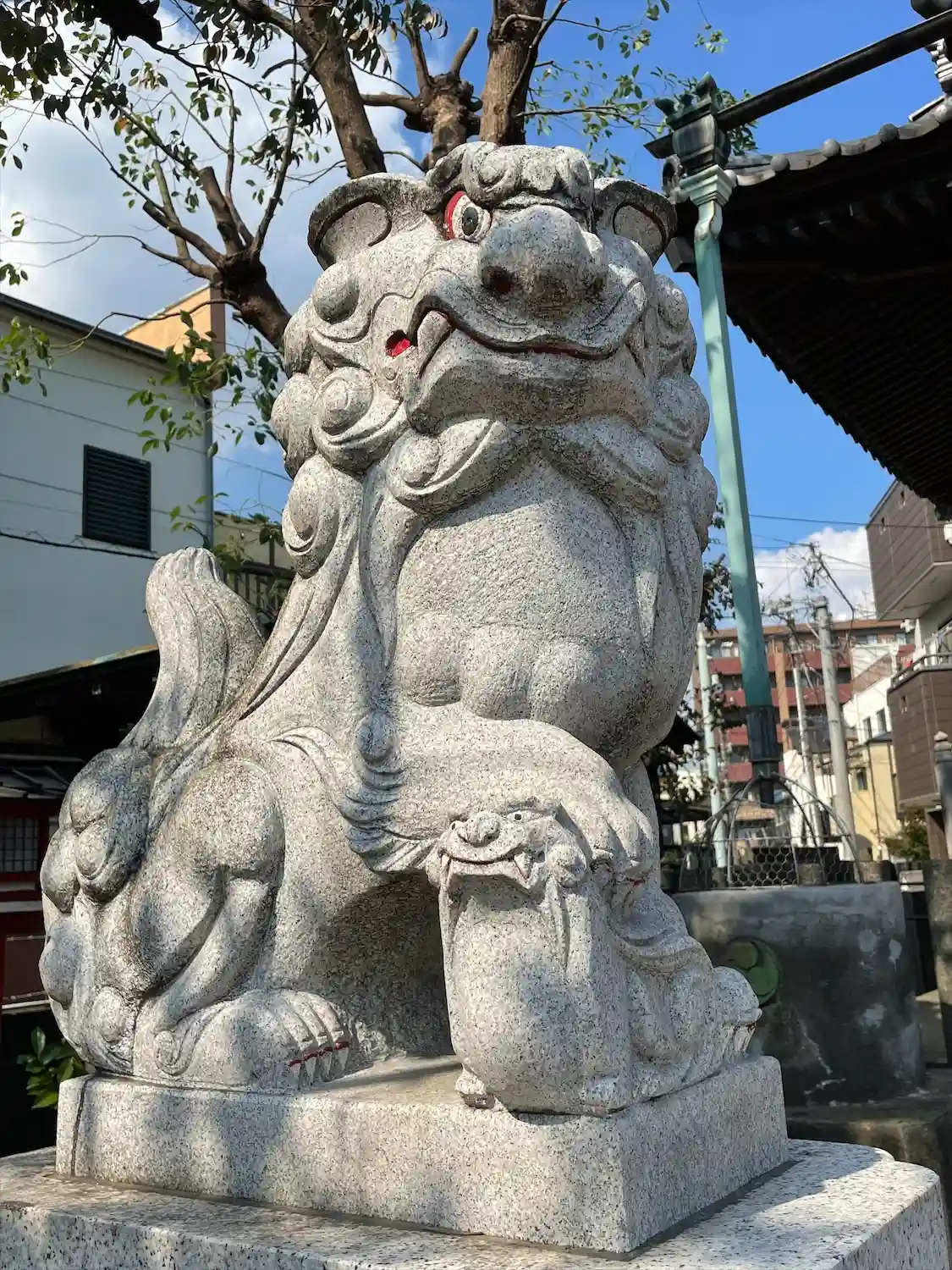 お顔にペイントのある狛犬さん