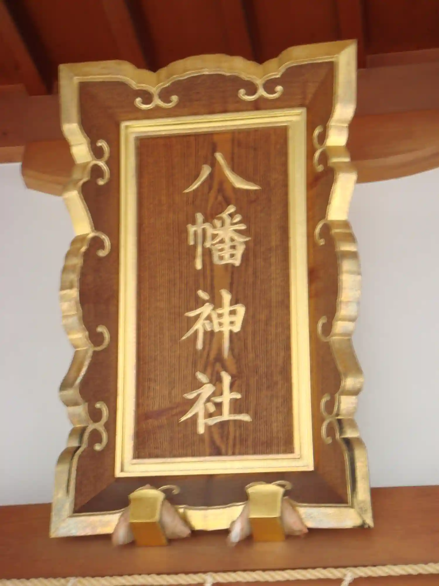 拝殿の扁額には「八幡神社」とあり、賽銭箱には八幡の代表紋である三つ巴紋。拝殿の後方に幣殿・本殿が接続している様式で本殿は流造。街中の神社に多いのだが、社殿の左手は駐車場になっている。
