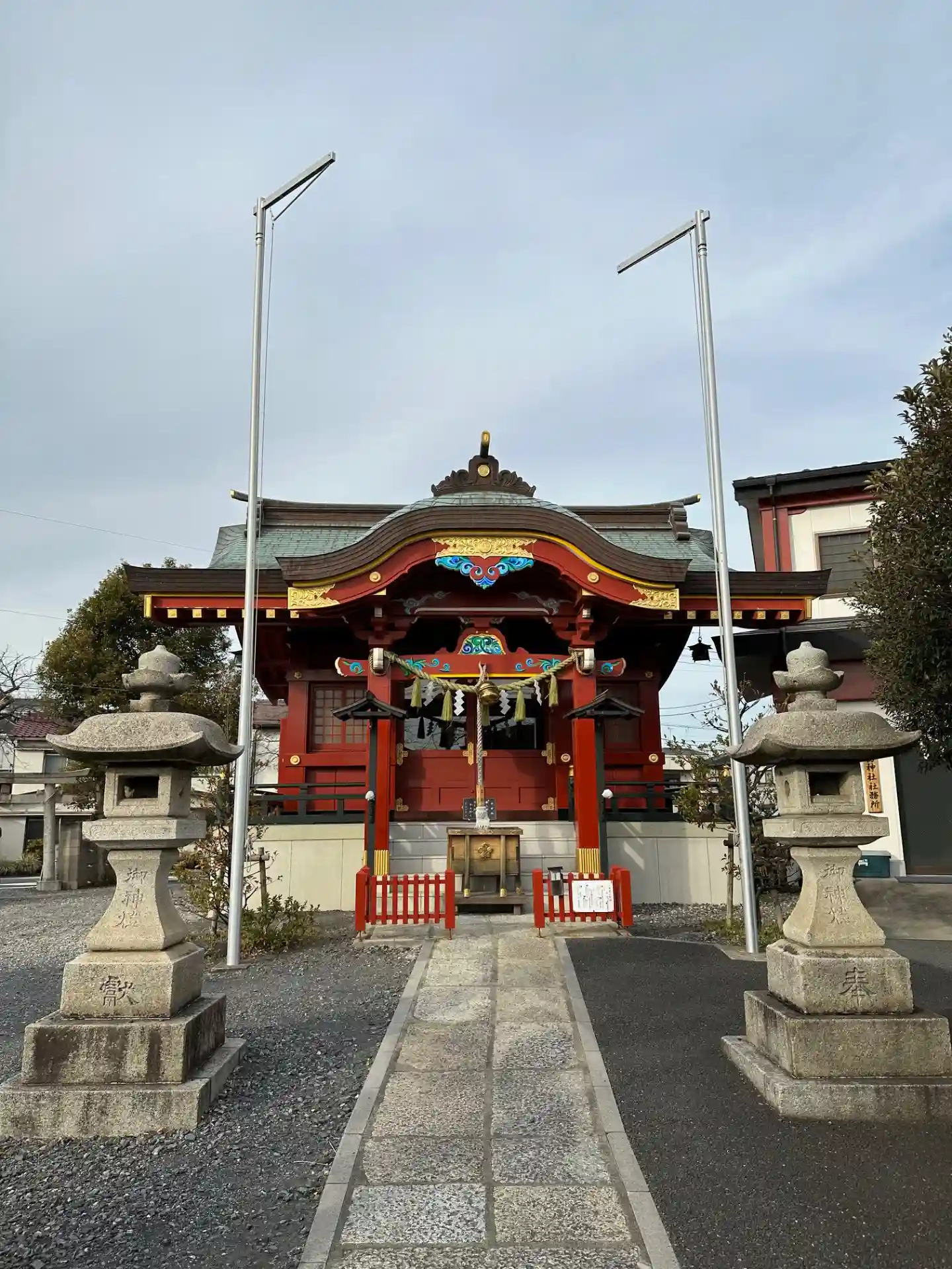 多摩川諏訪神社〜鳥居から臨む社殿
