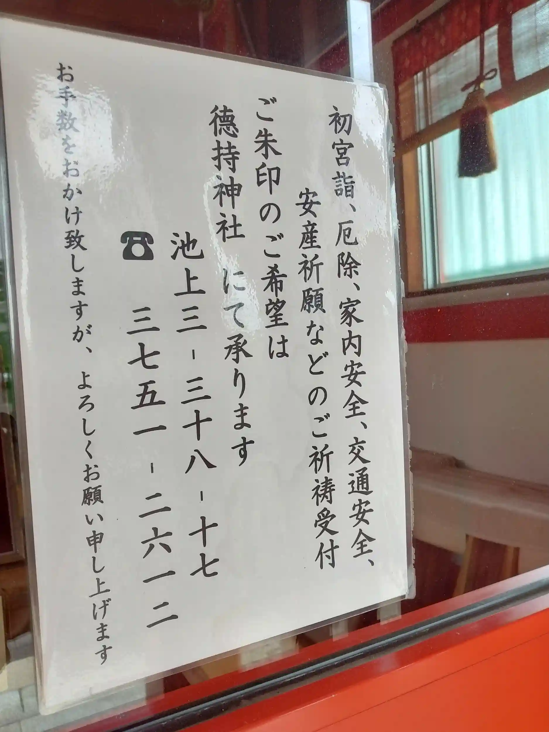 御朱印は、少し離れた德持神社で頂けると記載がありました。