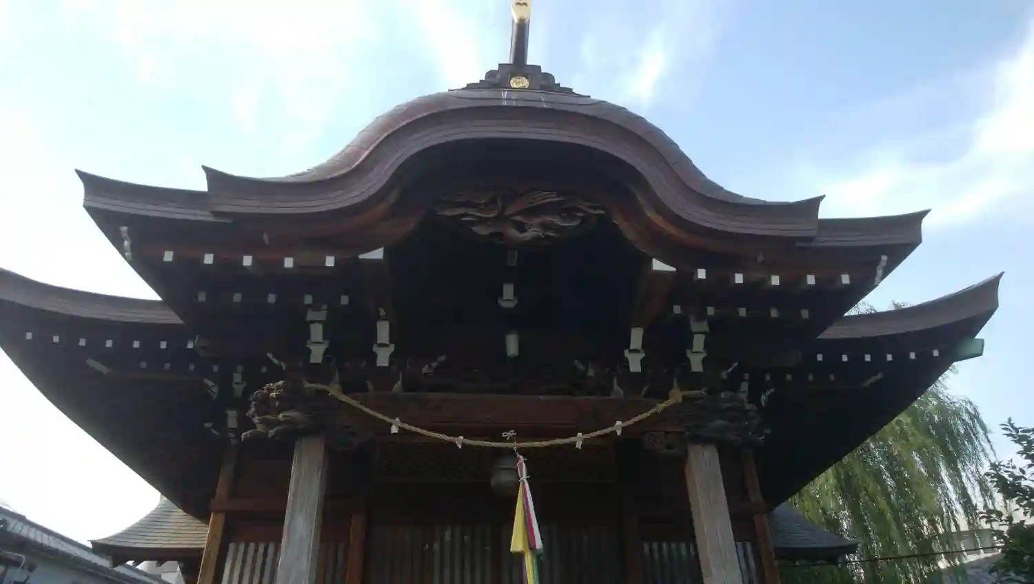 蒲田で思いがけず出会った神社です。社殿の屋根の型がとても美しくかっこいいです。すごいですね!