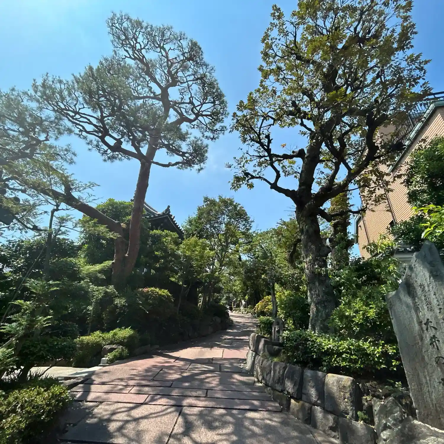 山門を入ると敷地の中に広がる伽藍と植物。都心にいることを忘れて…