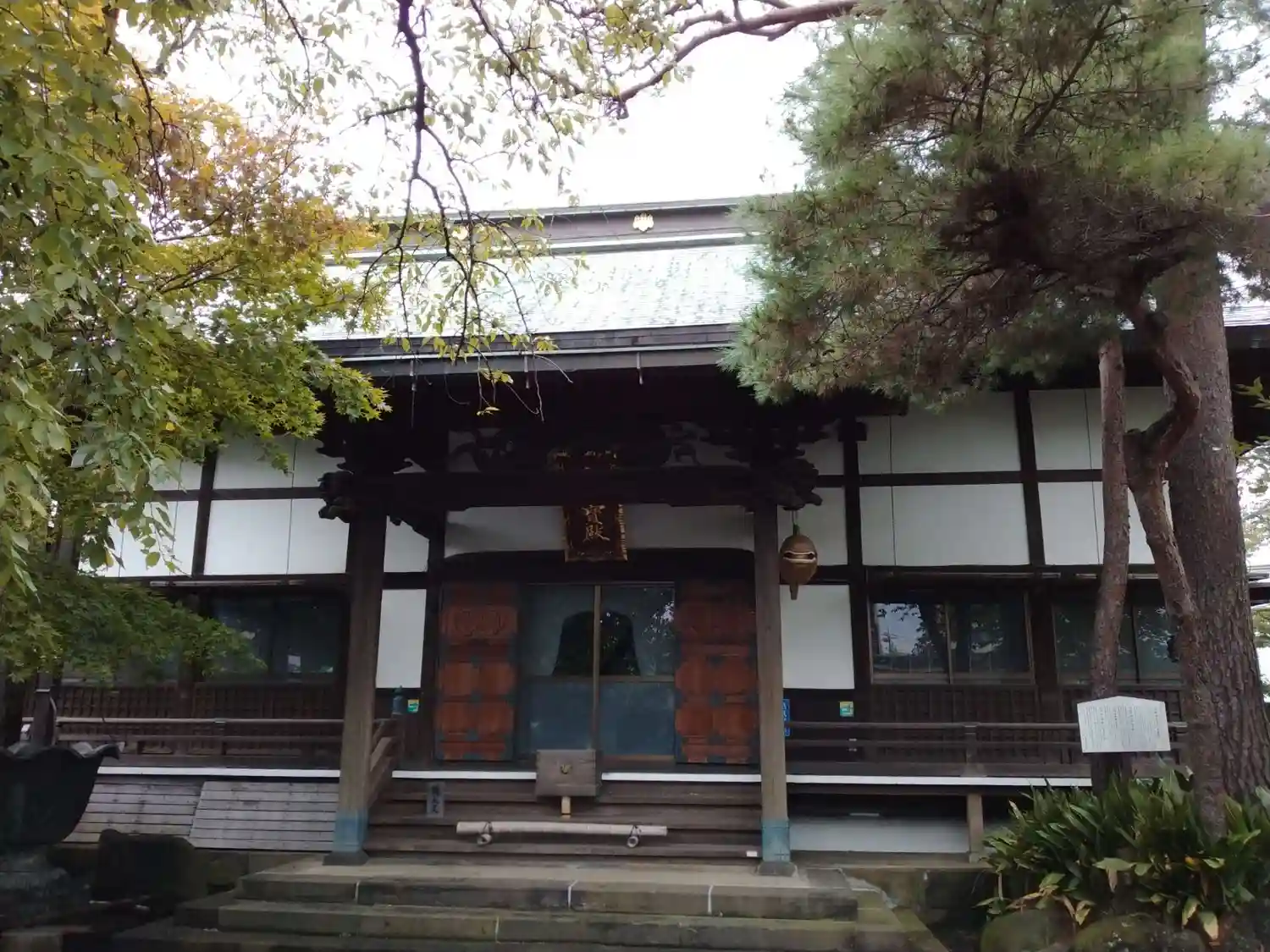本堂前には住居棟の寺務所で御朱印受付できる案内板あります。