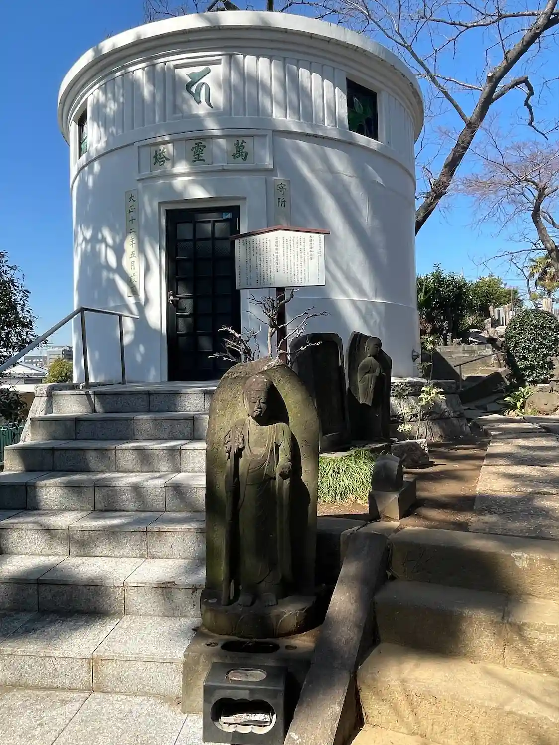 萬霊塔の建物は、大正12年の関東大震災の直前の建物です。