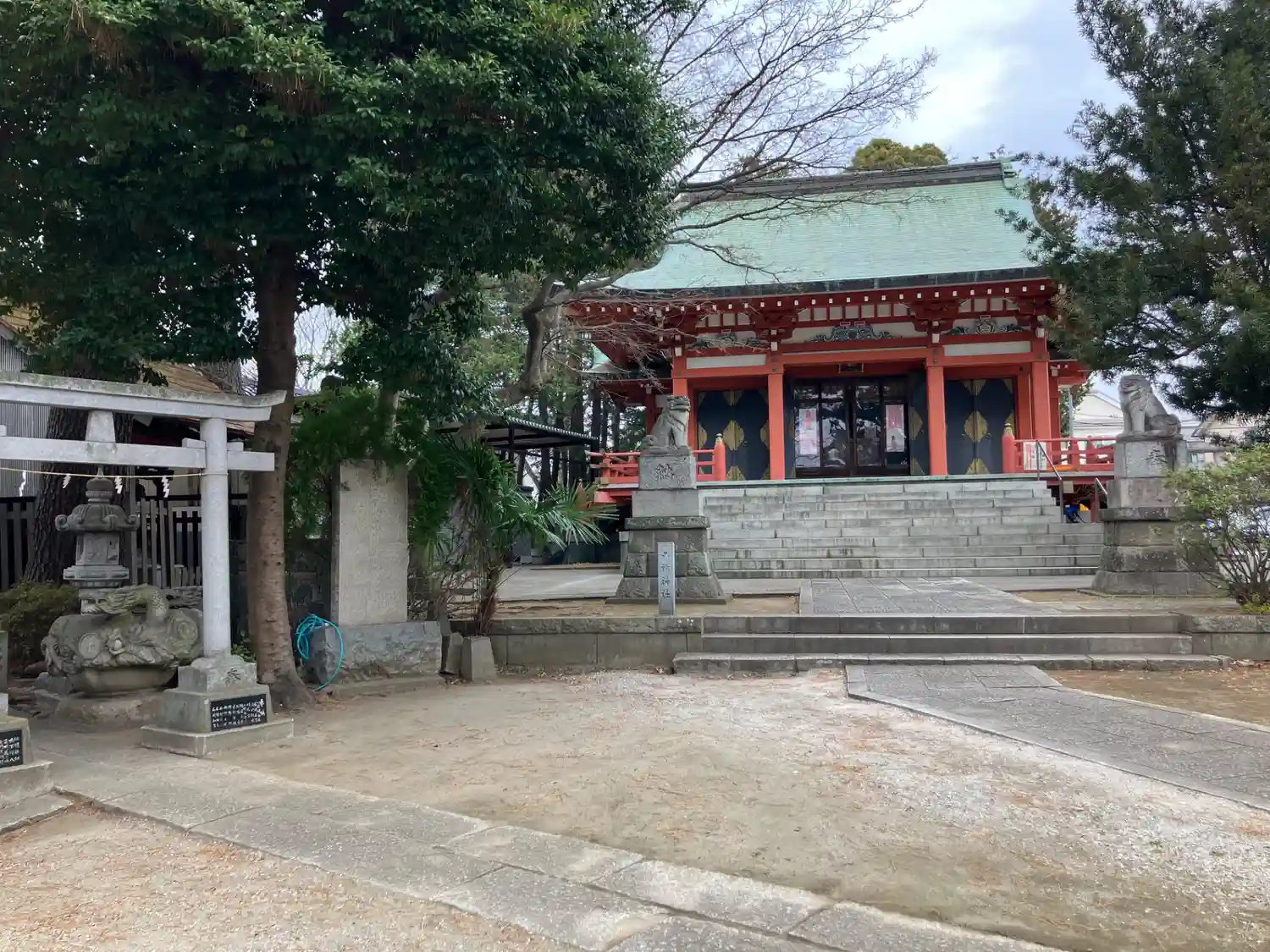 住宅街にかなりの広さのカラフルで立派な社殿。メンテを丁寧にして守りたい。