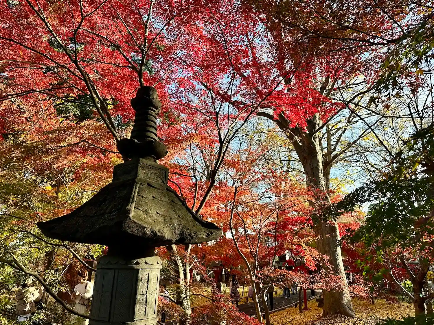 真っ赤な紅葉と黄色い銀杏が綺麗です。