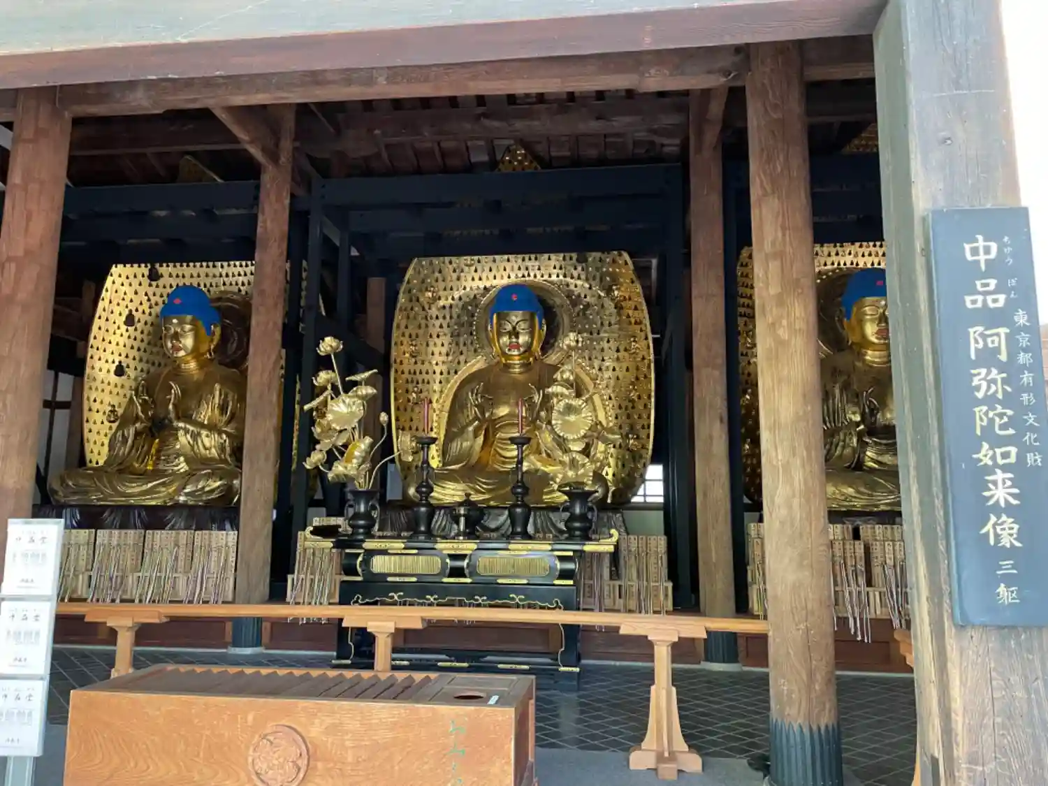 上品堂、中品堂、下品堂の3堂が並び、それぞれに3体ずつ阿弥陀如来像が納められています。