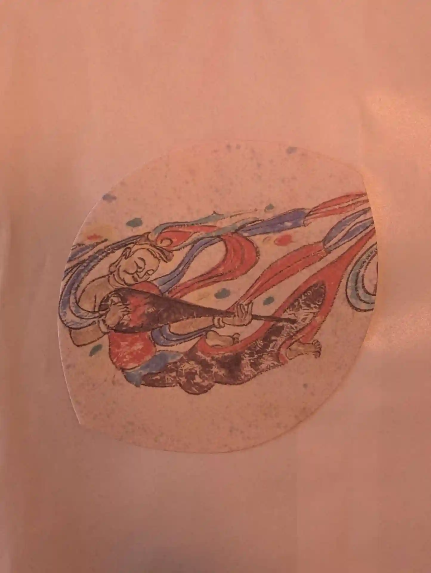 弥勒菩薩御朱印。弥勒菩薩半跏思惟像の絵。さわり心地が柔らかくしなやかなベージュの和紙。