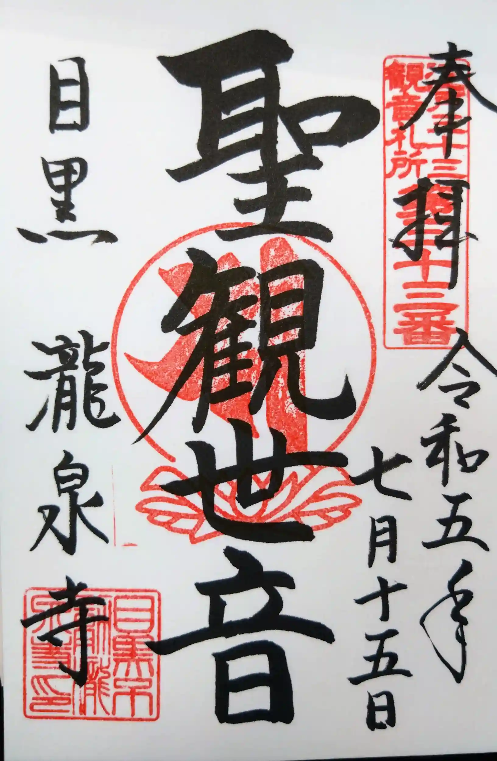 瀧泉寺(目黒不動尊)の御朱印