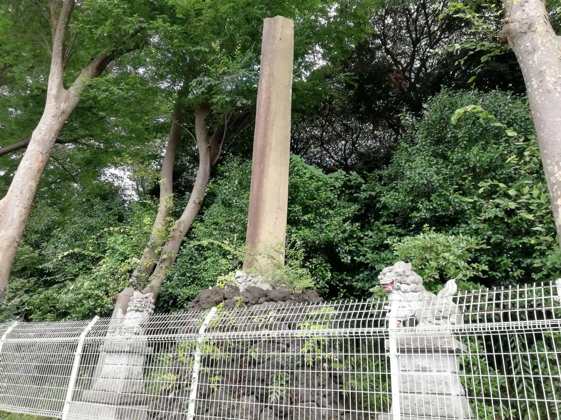 北側不動公園側のフェンス沿いに石碑と狛犬があり気になりました。大日如来像の後ろだと思うのですが説明板は見当たりません。