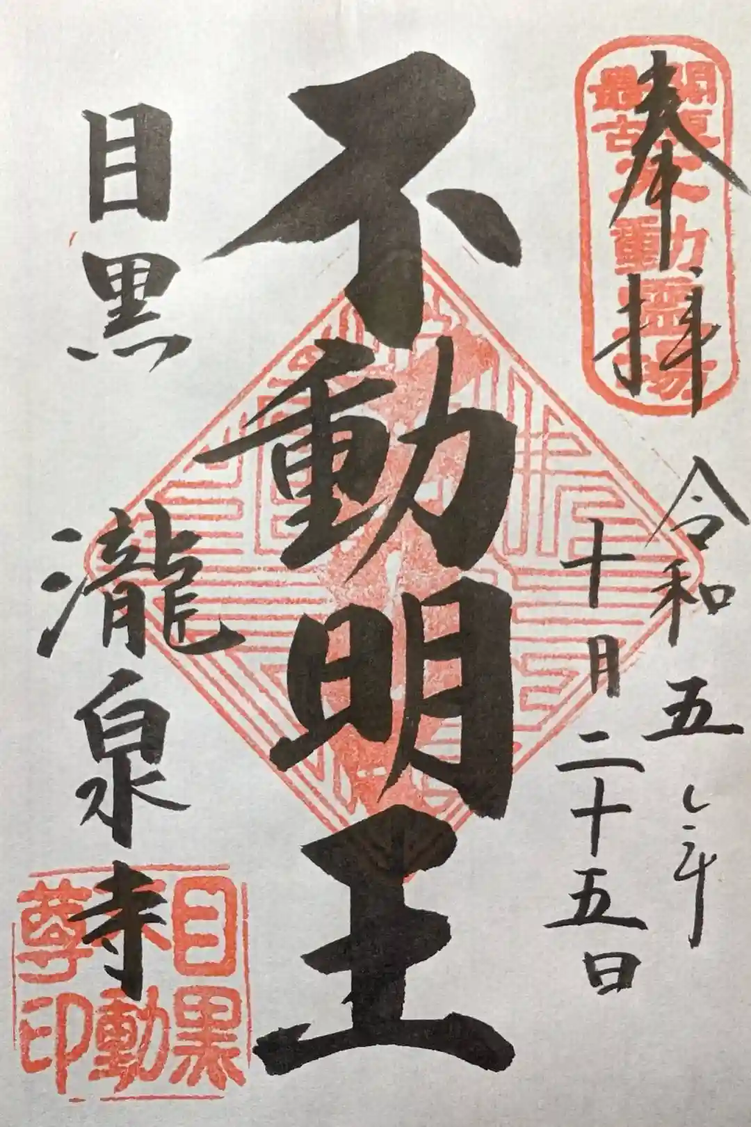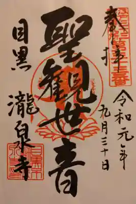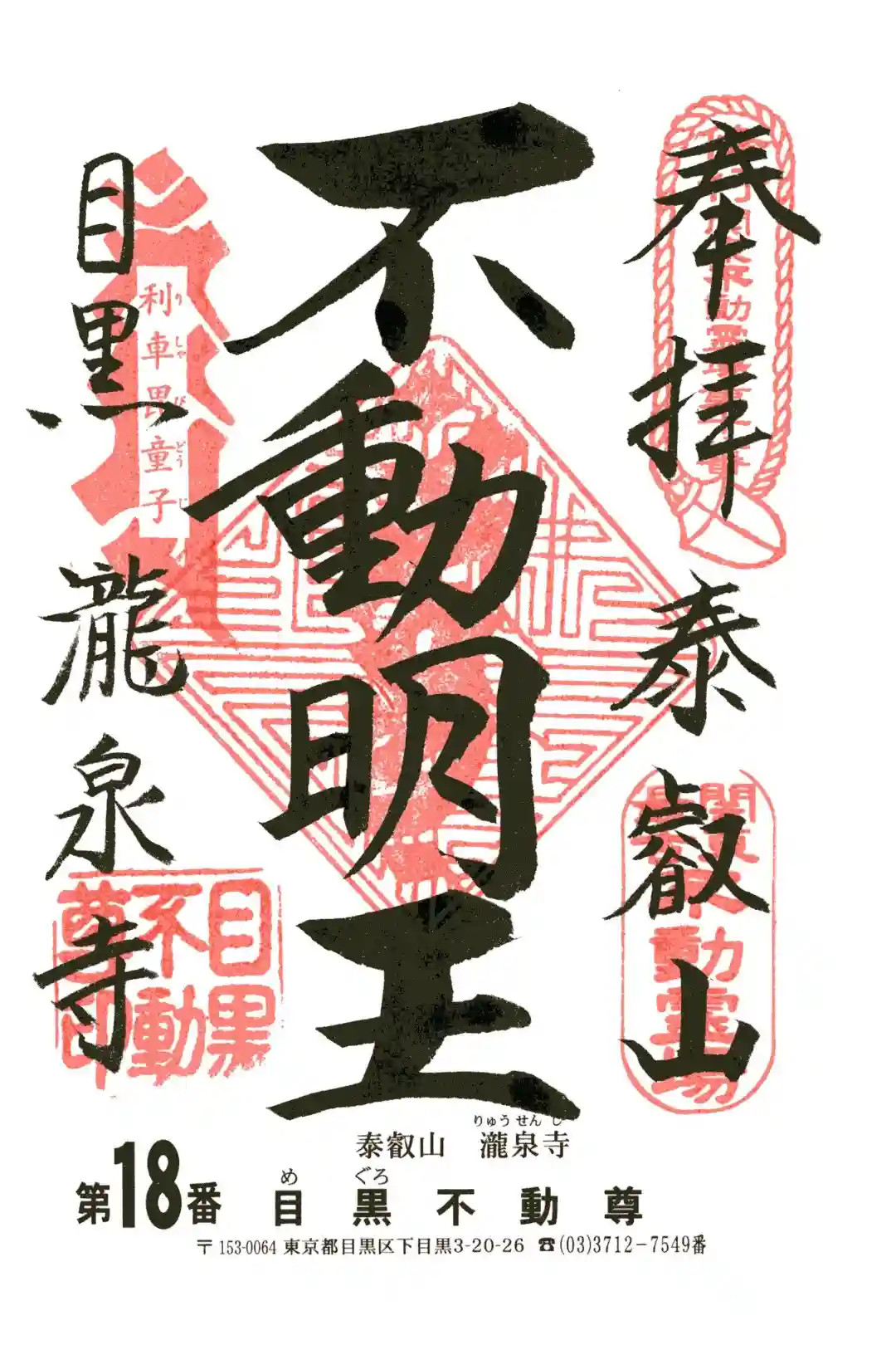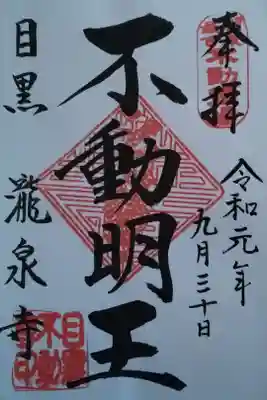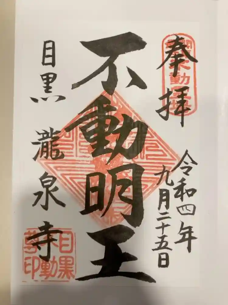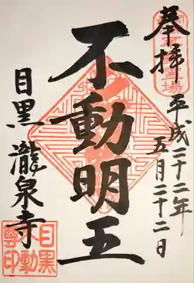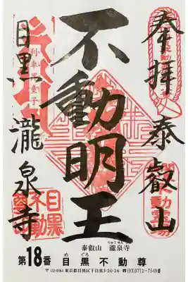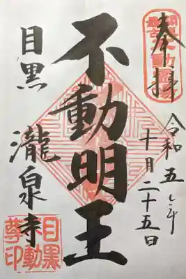 目黒不動尊、不動明王の御朱印。関東最古不動霊場 目黒 瀧泉寺