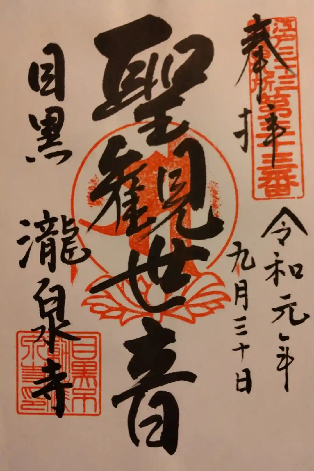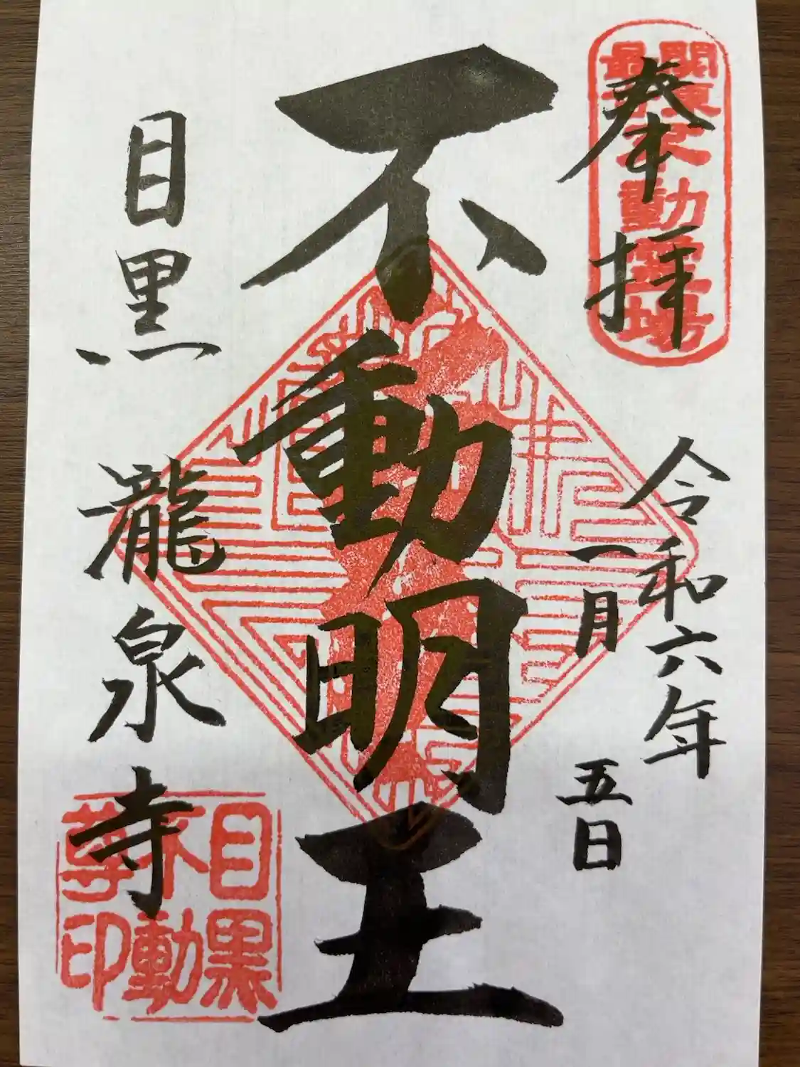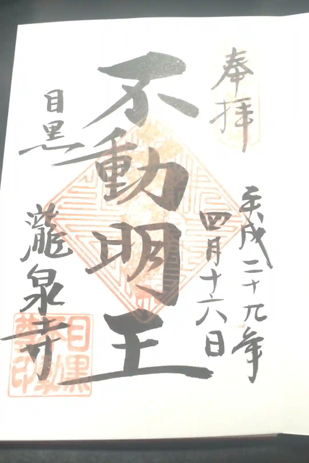 目黒不動尊、不動明王の御朱印。関東最古不動霊場 目黒 瀧泉寺