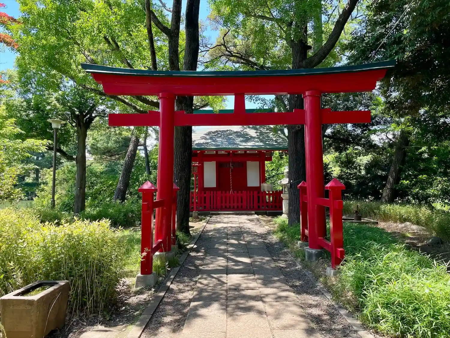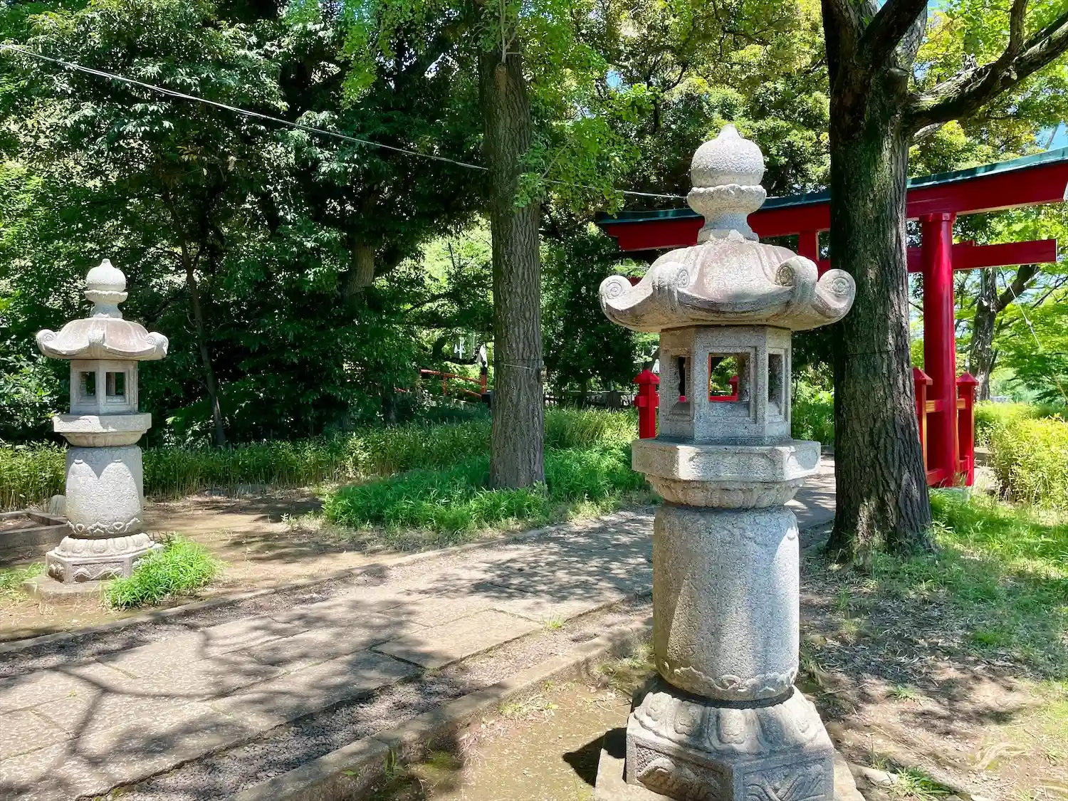 洗足池公園内北側の小島の中に鎮座。