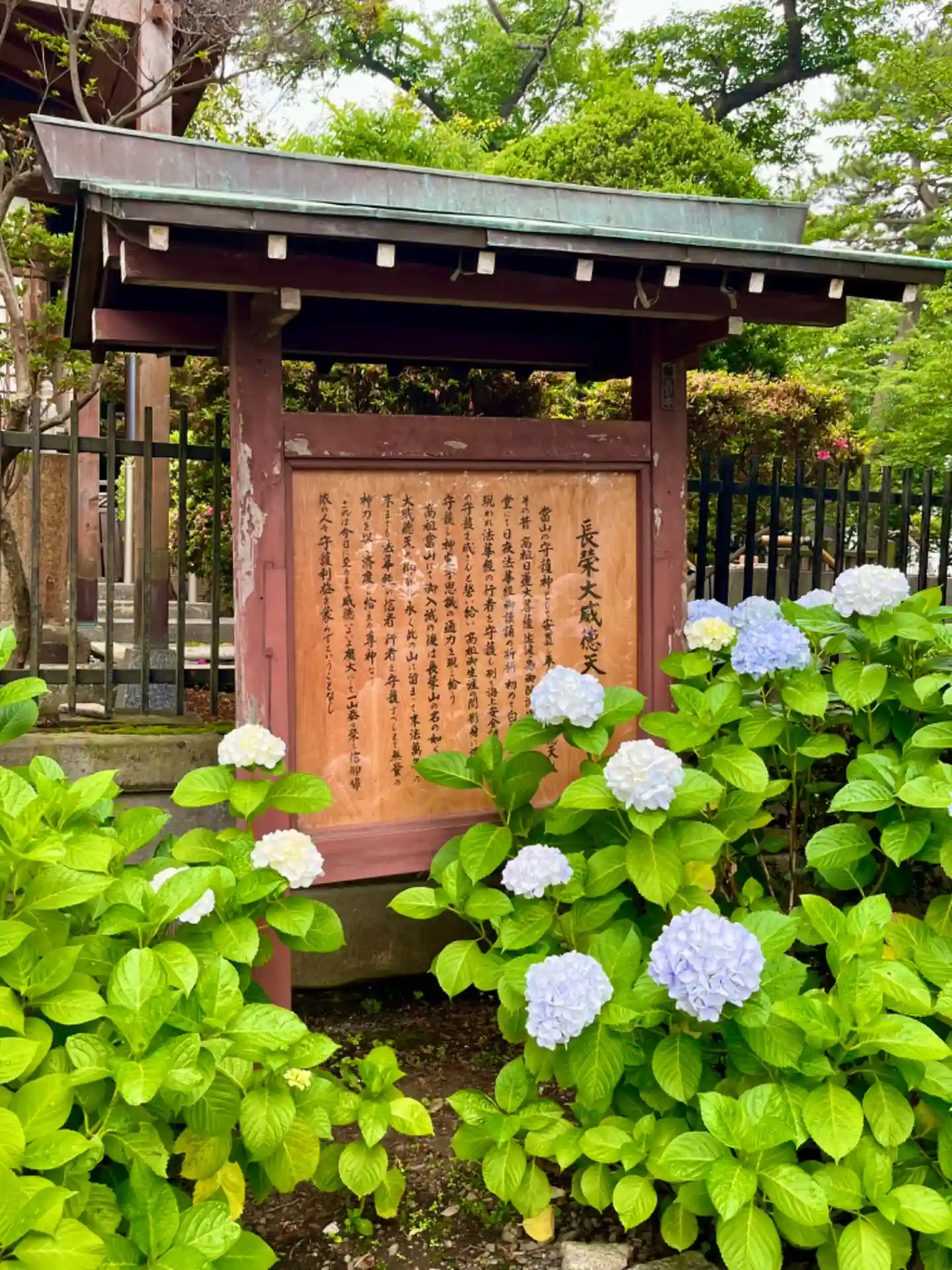 長栄山池上本門寺境内にあり、日蓮聖人が佐渡配流中に守護神となった「長栄大威徳天」を祀っている。