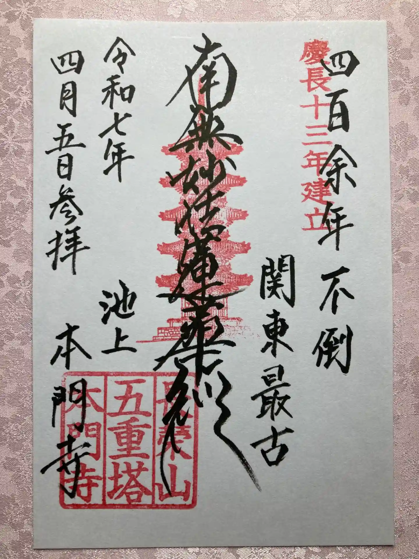 花まつりの今日、五重塔限定の御首題と御朱印をいただきました。