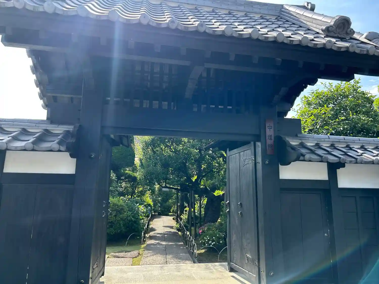 中道院は、単なる寺院にとどまらず、日蓮宗の法脈を引き継ぐ重要な場所です。現在では、信者たちが訪れ、敬虔な気持ちで祈りを捧げています。また、境内には南無妙法蓮華経と刻まれた巨大な題目塔があり、この塔は文化8年(1811年)に池上本門寺の43世、静正院日摂によって建立されました。
