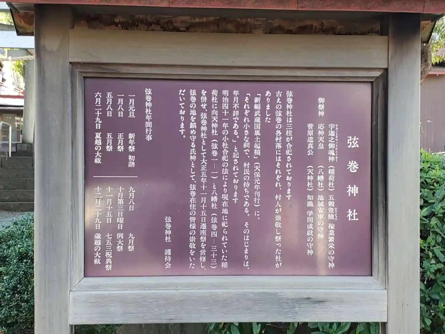 | ご祭神 | 《合》菅原道真,《主》応神天皇,宇迦能御魂神 |