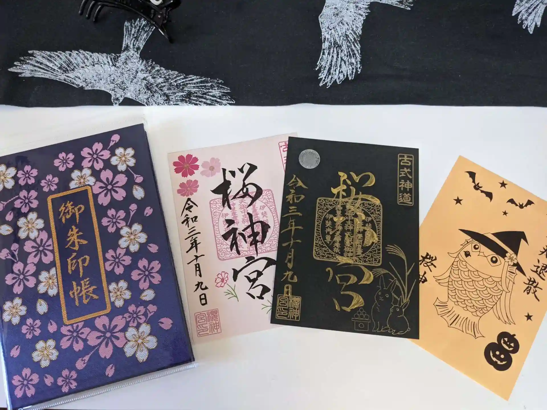 東急沿線の神社巡り。1社目。東急田園都市線桜新町に鎮座。10月の御朱印、ウサギさんとお団子が増えてる♡若く可愛らしい巫女さんが書いてくれました。ものすごく達筆です。「去年との違いを分かってくれて嬉しい。モチベーションに繋がります」と言ってくれました。御朱印に挟む紙もハロウィン仕様のアマビエさんです。