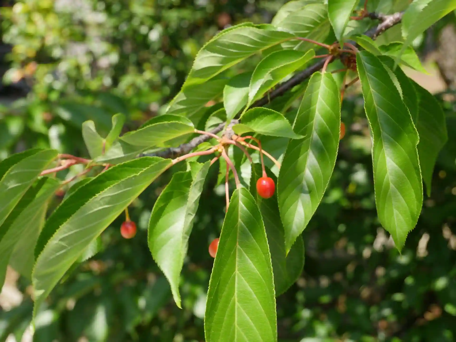 社殿の前にある河津桜には小さなサクランボが付いていました。