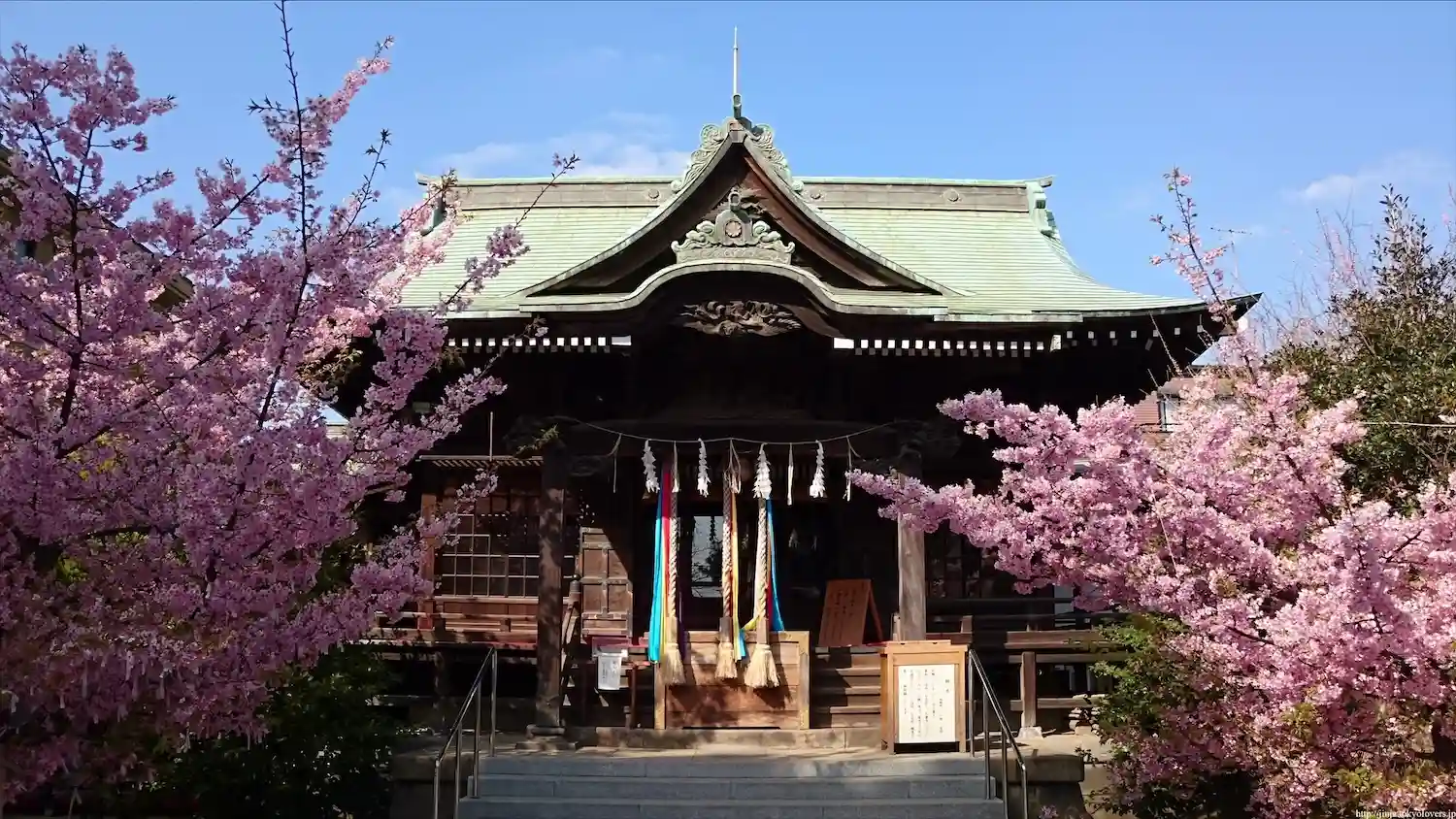 社殿前両脇の河津桜は、今が満開です🌸🌸🌸🌸🌸