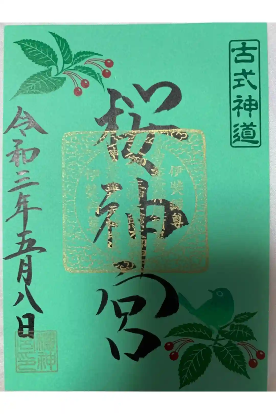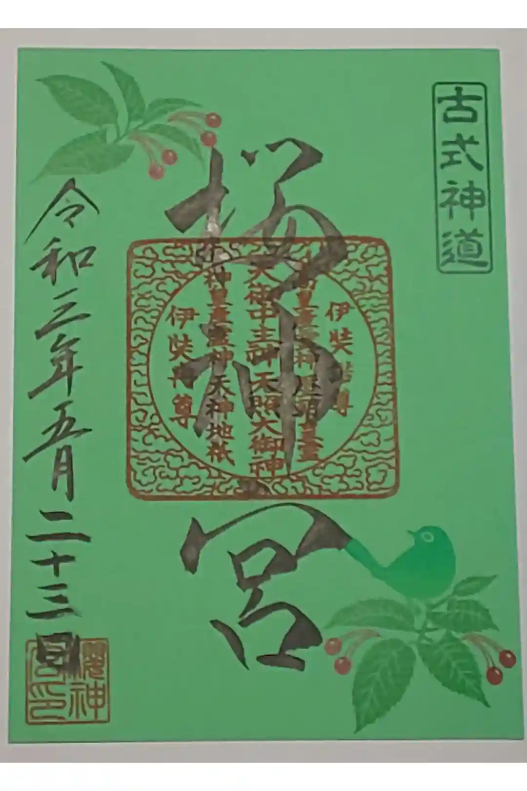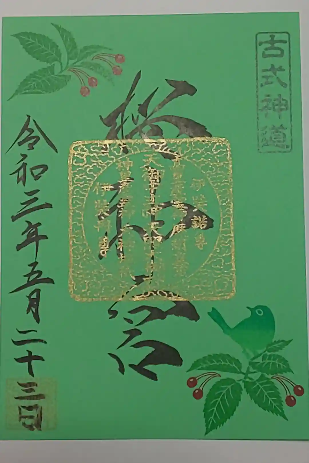 (書置き)メジロとサクランボ(緑紙朱印)