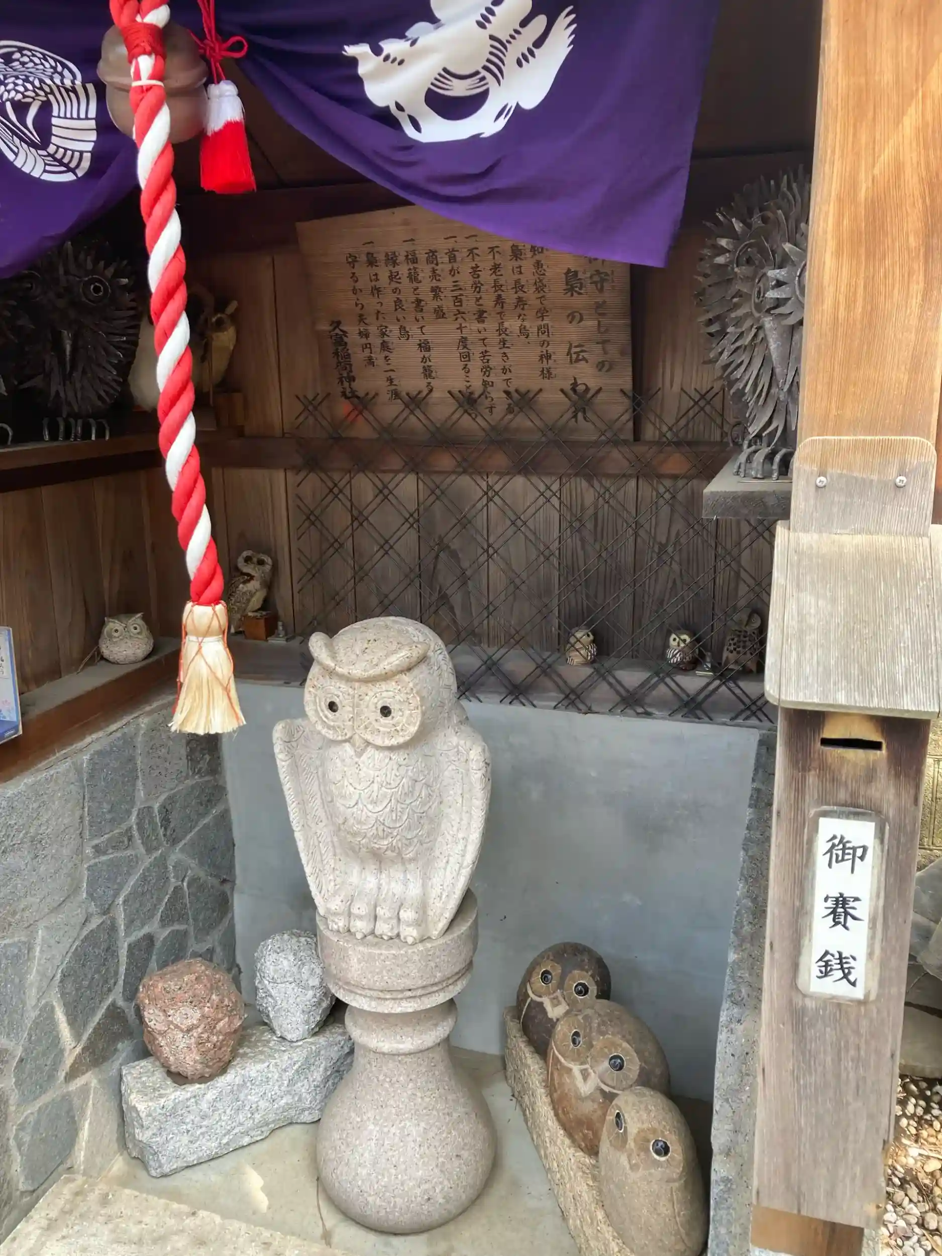 狛犬さんならぬ狛狐さんがかわいい。フクロウさんがまつられ、