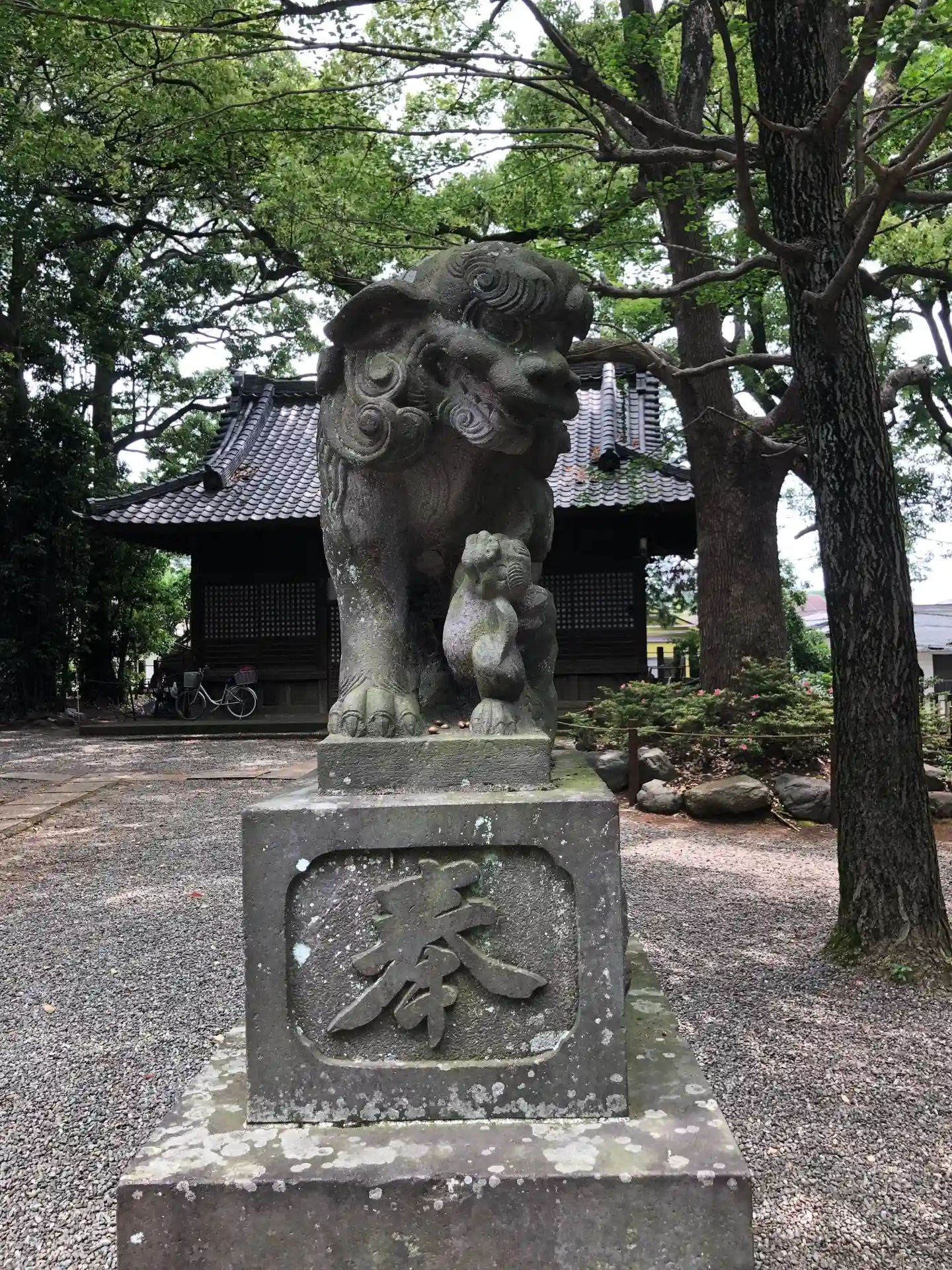 広々とした緑に囲まれた神社です。こちらの狛犬さん、阿吽とも子供を連れています。親も子も柔らかな表情をしていまして、とても優しい気持ちになれます。