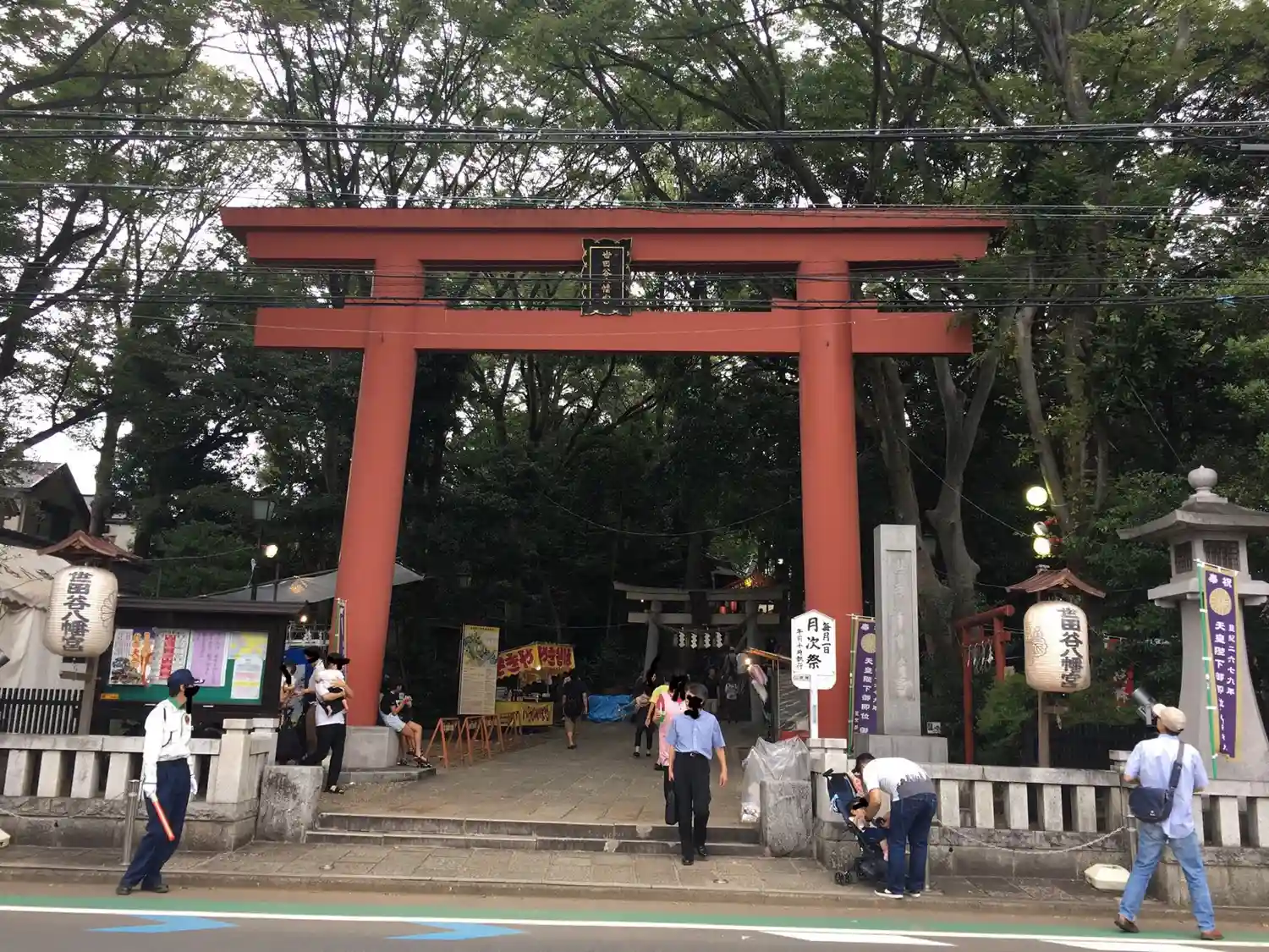 東急世田谷線「宮の坂」からすぐ近く、大きな赤い鳥居と土俵があります。