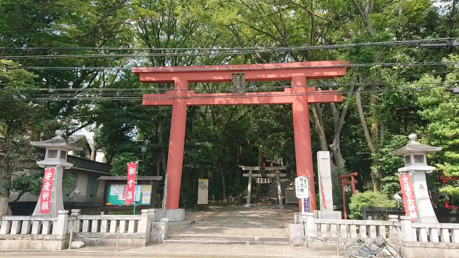 自転車は神社の向かいに止められます