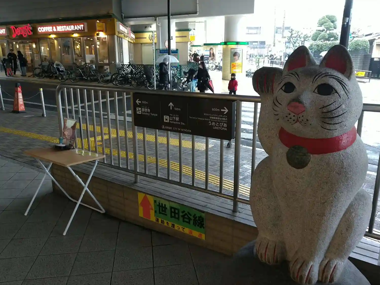 三軒茶屋まで歩きました。東急世田谷線の三軒茶屋駅では招き猫電車が発車を待っていました。