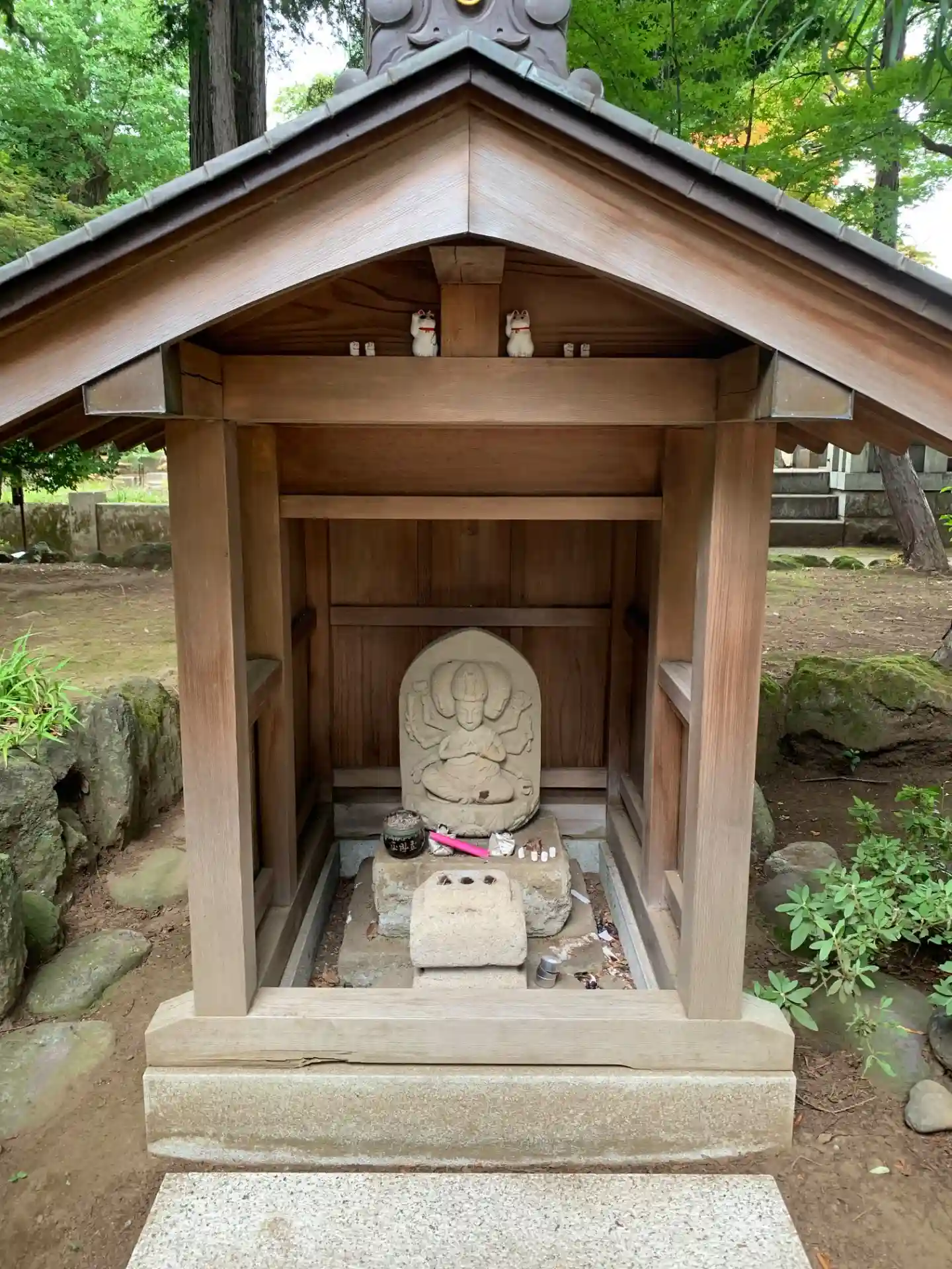 釈迦如来をはじめ、招福猫児観音像などが祀られています。