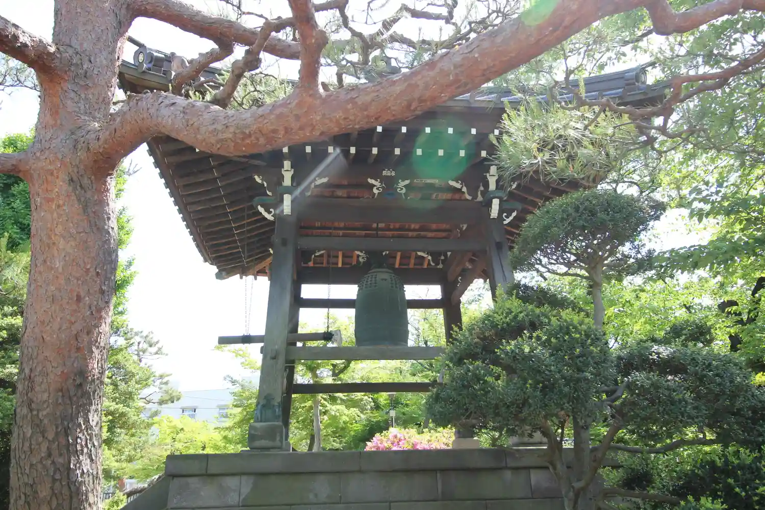 参道の右手に鐘楼(梵鐘)