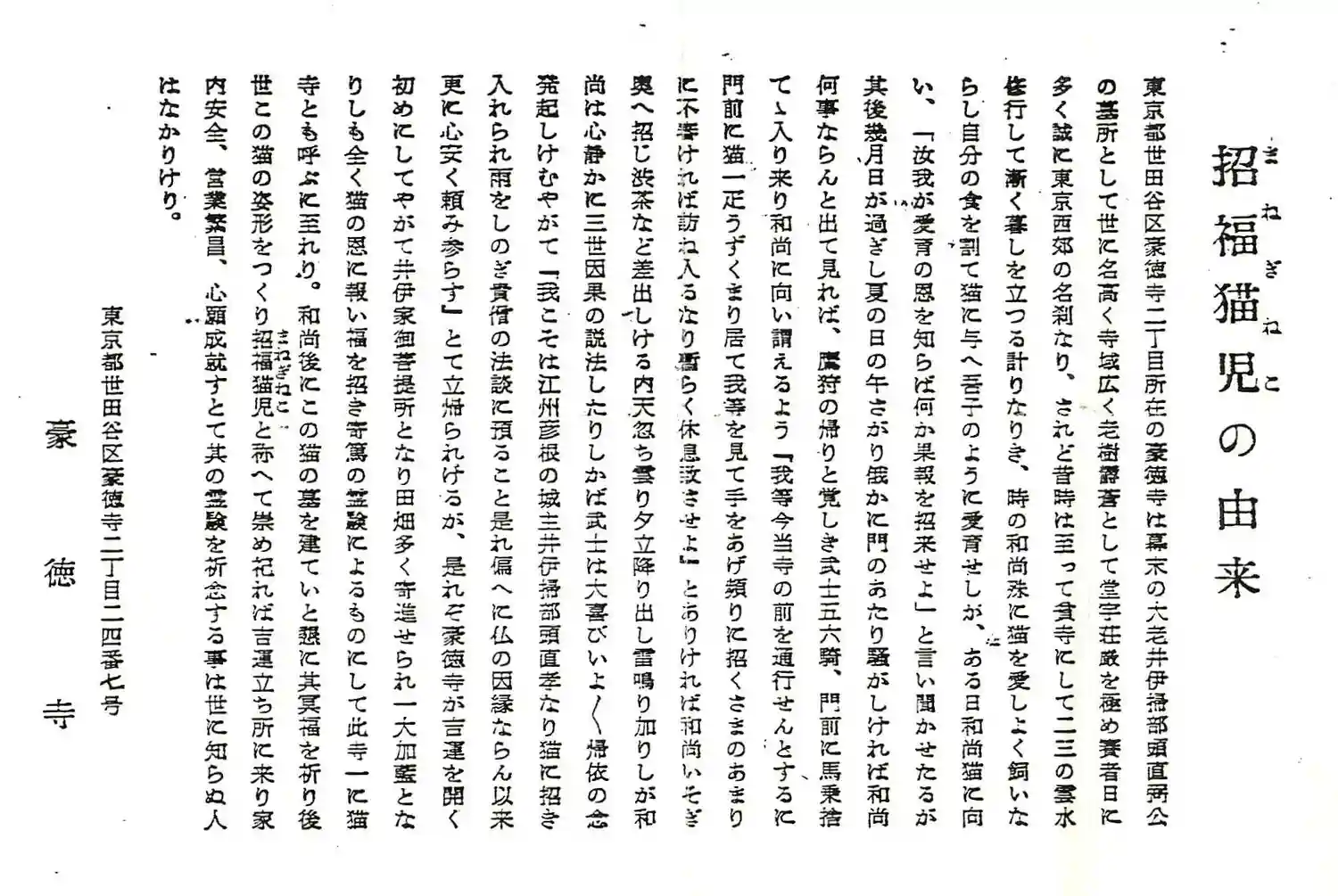 豪徳寺・由緒書
