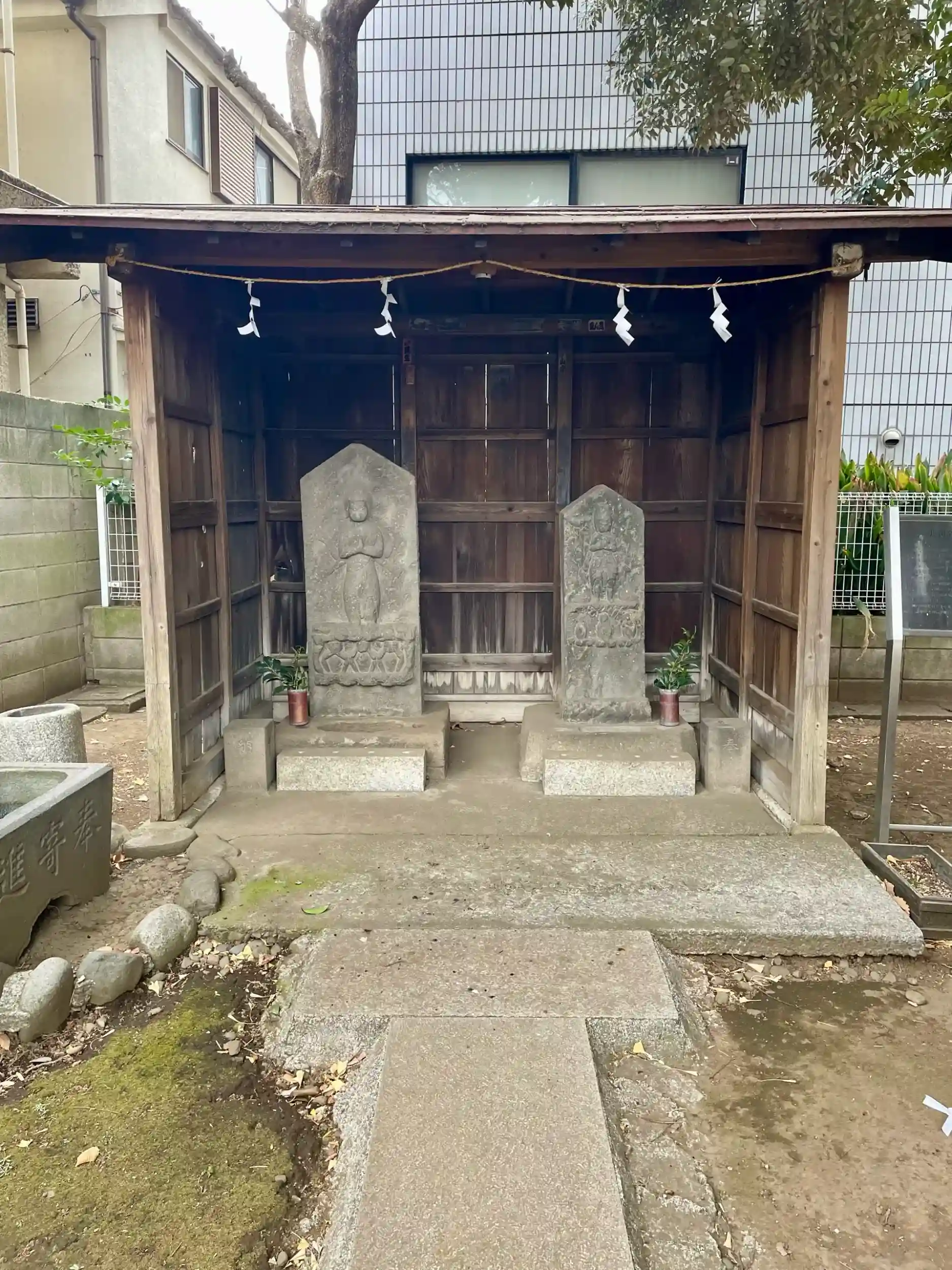 社殿は戦前のものが現存しており、境内には江戸中期の古い庚申塔(道標を兼ねた庚申塔も含まれる)が置かれている。
