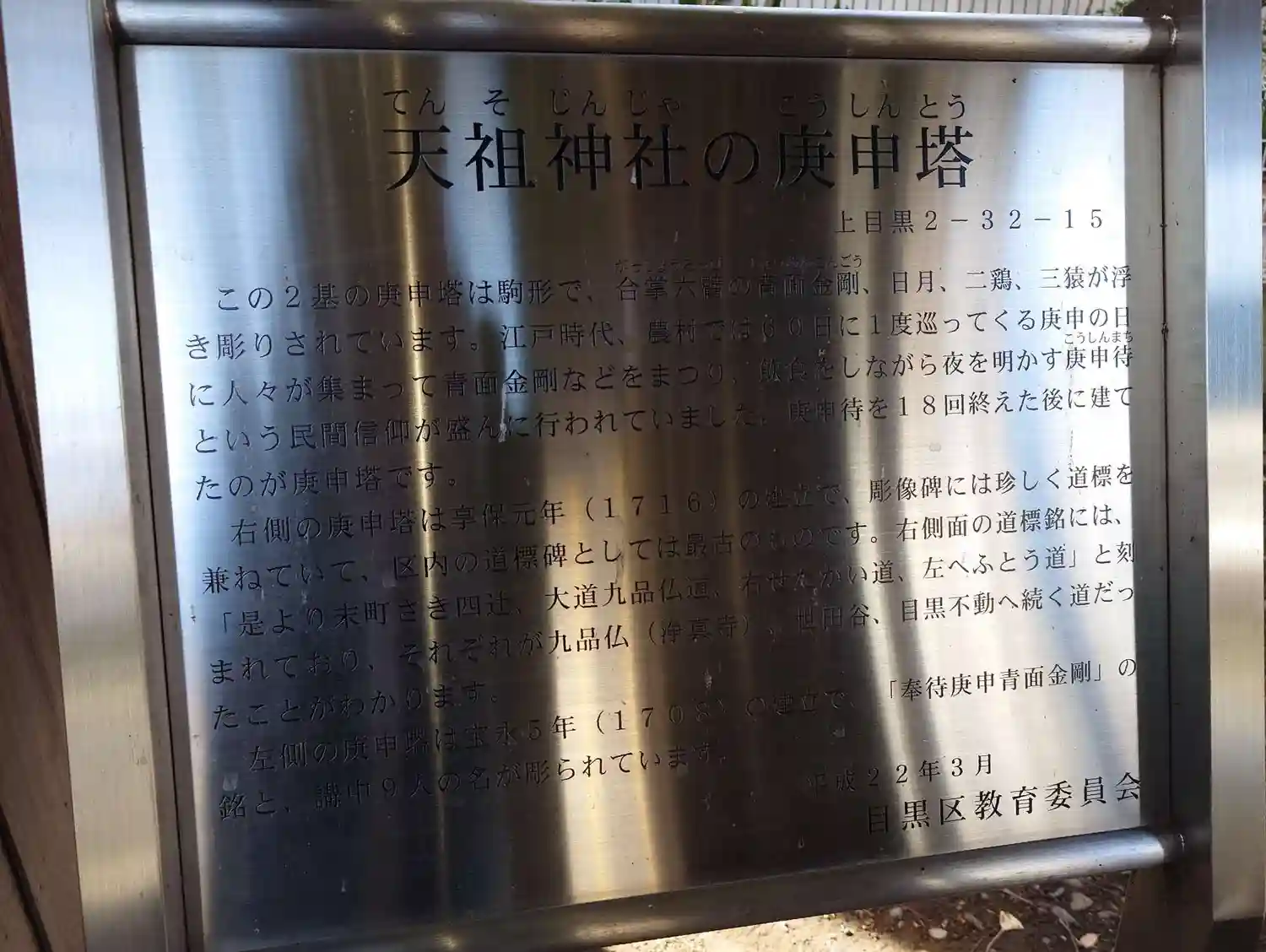上目黒天祖神社の由来説明板