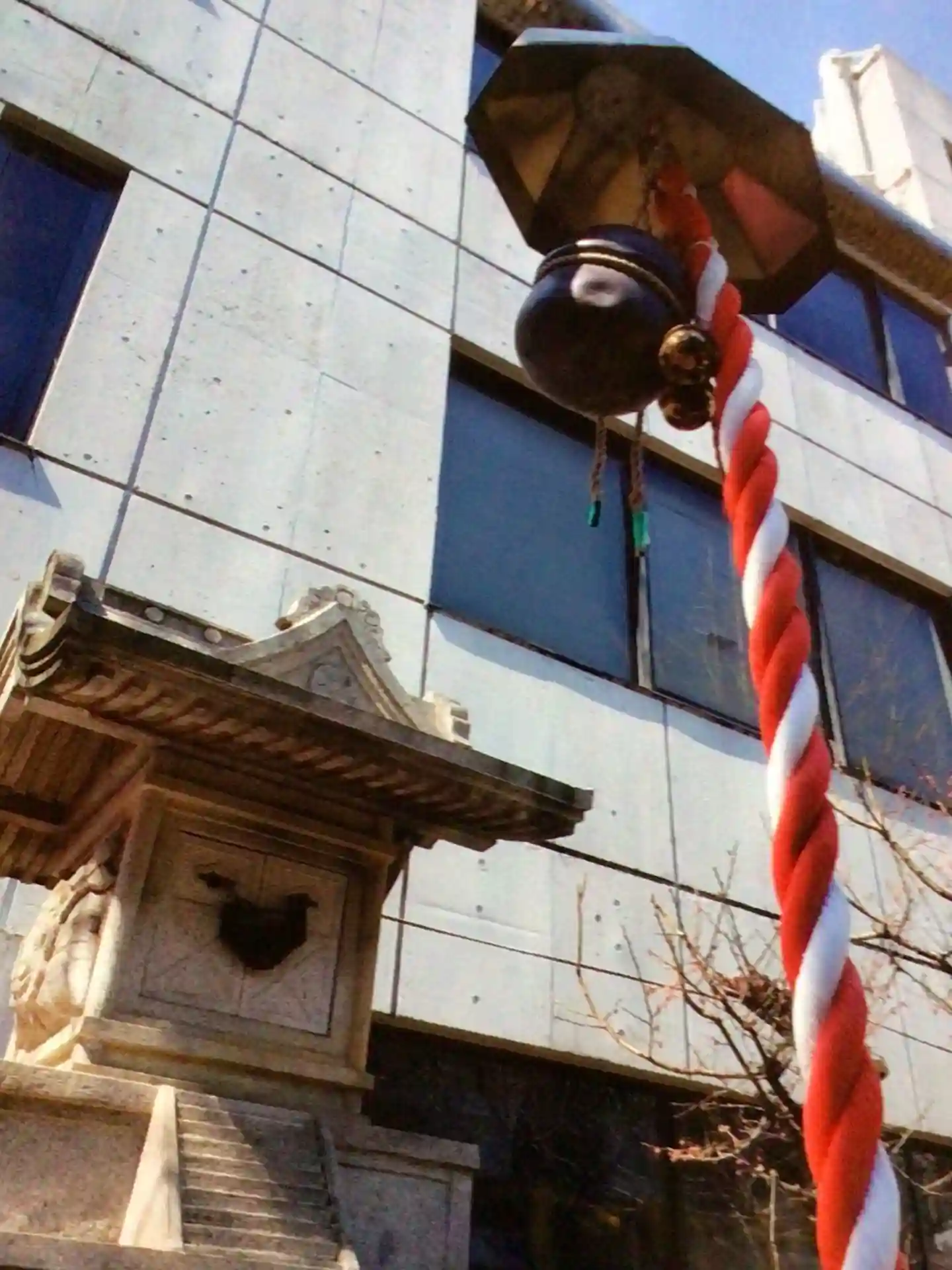 知り合いが中目黒のキンケロシアター(愛川欽也さんが生前作られた劇場で,今はうつみ宮土理さんが管理されています)でミュージカル舞台に出演するので行ったのですが、劇場目指して歩いていた時、キンケロシアターの真正面に神社らしきものを発見!