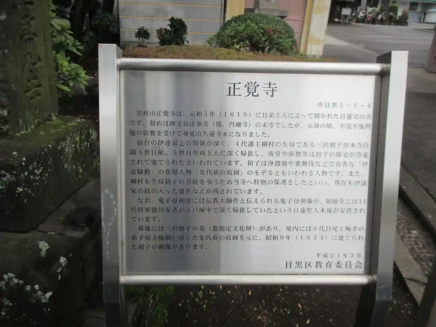 せっかく中目黒まで来たのだから、船入場から山手通りの向かい側にある正覚寺に立ち寄ってみる。この付近は桜の季節に何度か歩いていて、このお寺にも何度か立ち寄ったことがある。