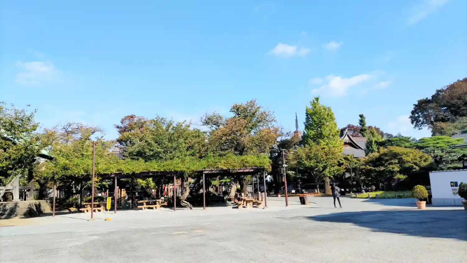 広い境内を持つお寺です。椅子とテーブルもあり、散歩するには良い場所だと思います。